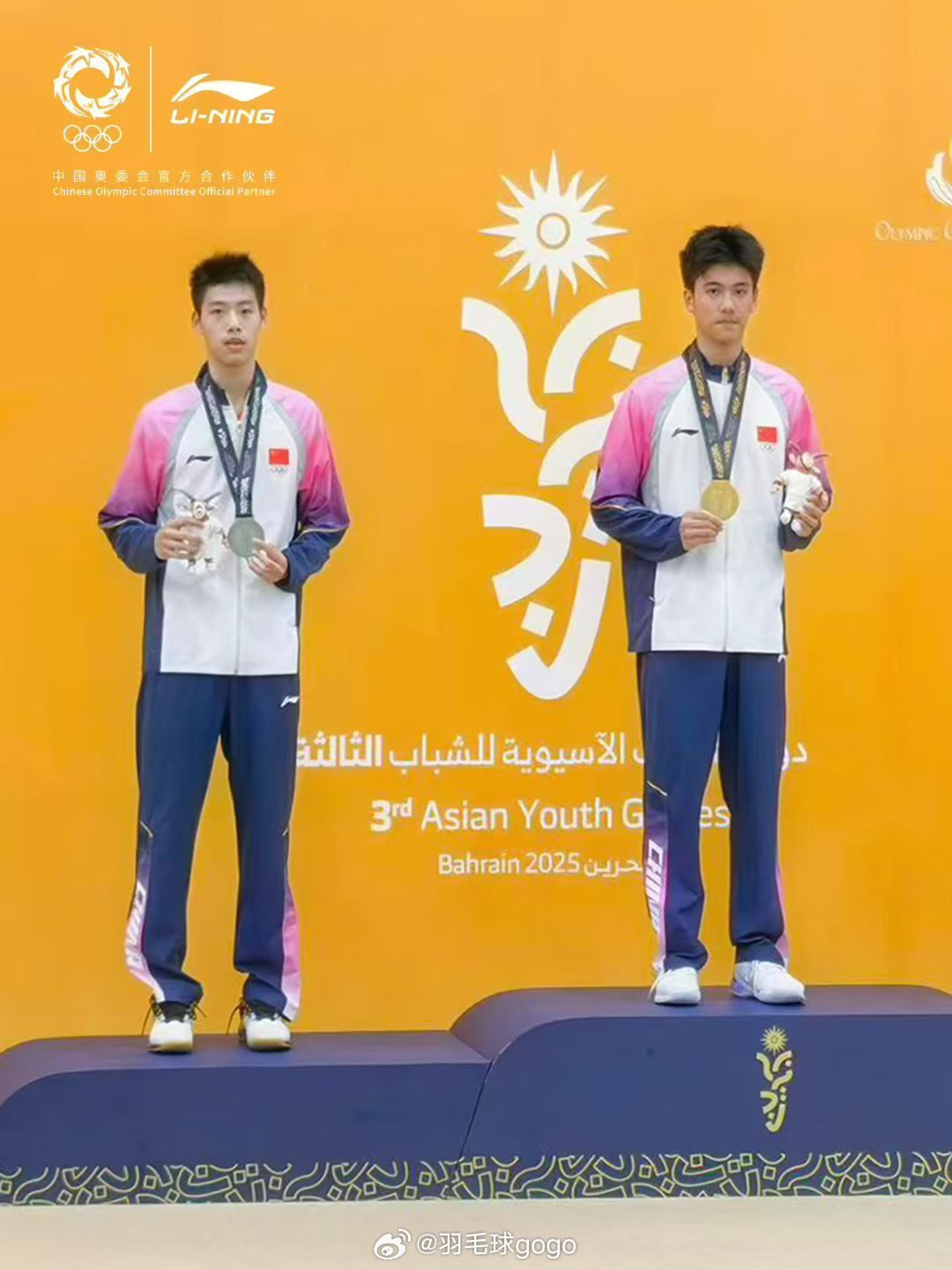 恭喜国青小将罗靖禹、徐跻宁赢得2025亚洲青年运动会羽毛球赛男单冠亚军!