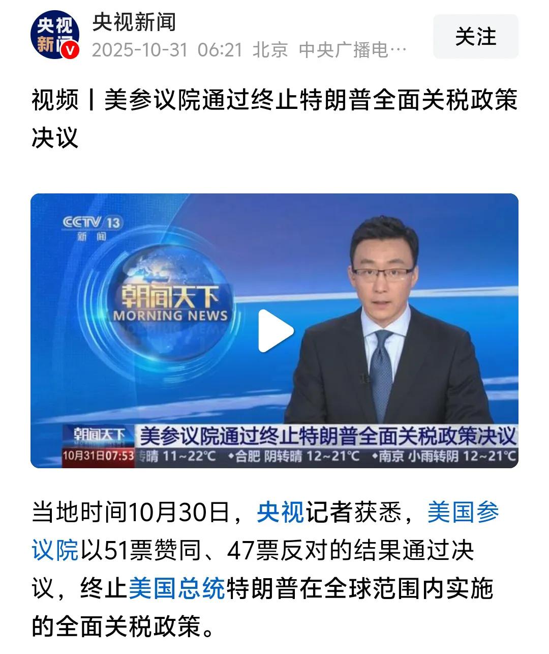 关税政策虽然让美国部分阶层得利,但也损害美国另一阶层的利益,根据美国商务部2025年报告,特朗普的全面关税让企业多掏了近300亿美元成本,消费者每年买日用品要多花500多美元,农业、零售业等行业对特朗普的政策早就不满。 关税政策加速了国内通胀,甚至可能导致美国经济衰退,这些压力最终促使参议院出手。 民主党掌控的参议院想通过废除关税来讨好企业和中间选民,而共和党部分人则想靠维护关税稳住保守派票仓,此次参议院表决中,有5名共和党议员倒戈支持民主党,使得决议以微弱优势通过。 缓解与盟友的贸易引发了国际贸易体系动荡,导致美国与盟友关系紧张。参议院有意重塑美国在多边贸易体系中的领导力。 不过,该决议要真正落地成为法律还面临许多问题。决议接下来须经众议院表决,而此前众议院共和党人已多次阻止推翻关税的立法行动,且众议院议长约翰逊是特朗普的铁杆支持者,即便众议院迫于压力启动投票并通过,国会仍需三分之二绝对多数才能推翻总统的否决, 所以,特朗普的关税谈判政策在现阶段仍然有效。 美国特朗普关税