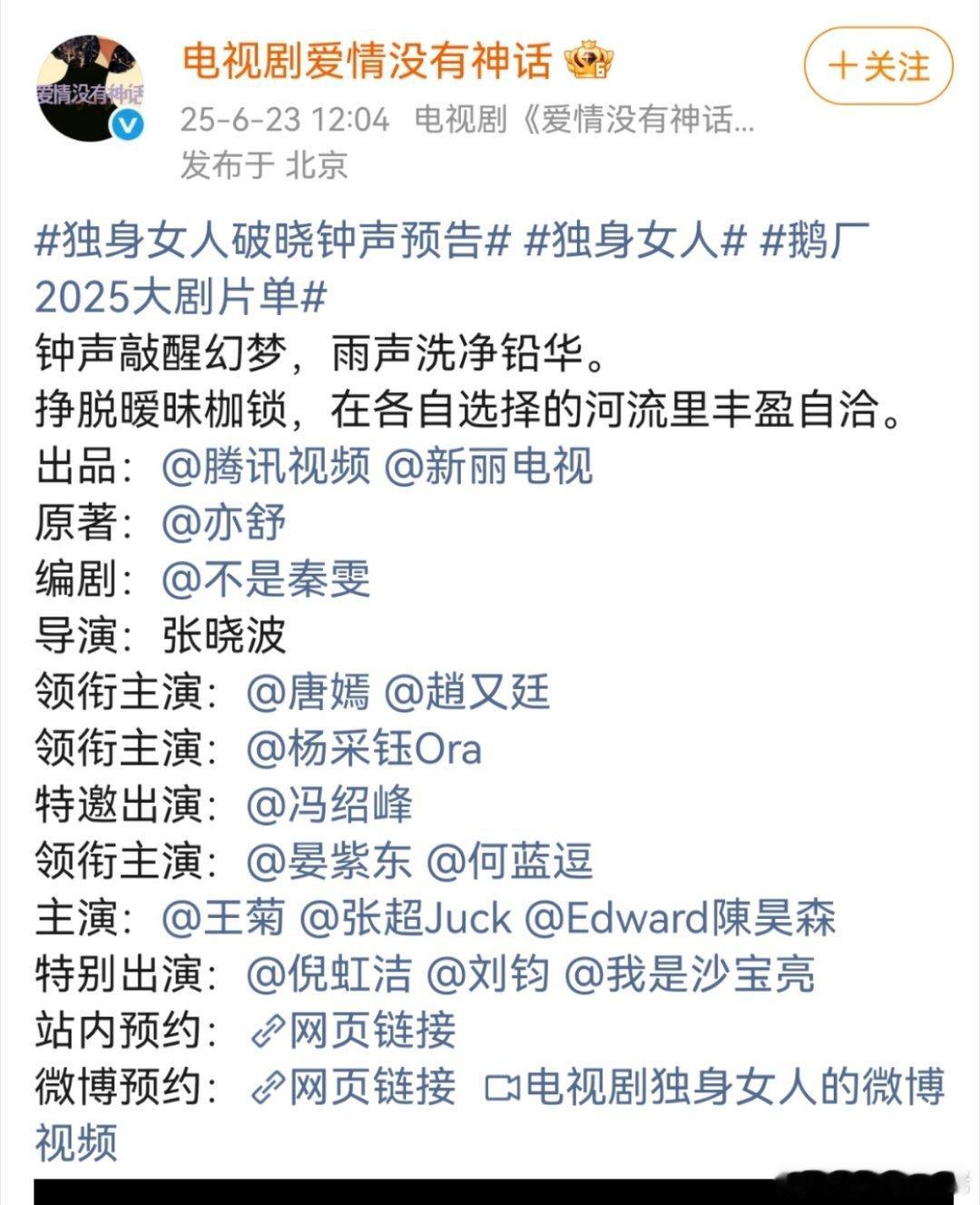 唐嫣马上要上的新丽剧→爱情没有神话,编剧就是秦雯[桃里桃气][桃里桃气][桃里桃气]