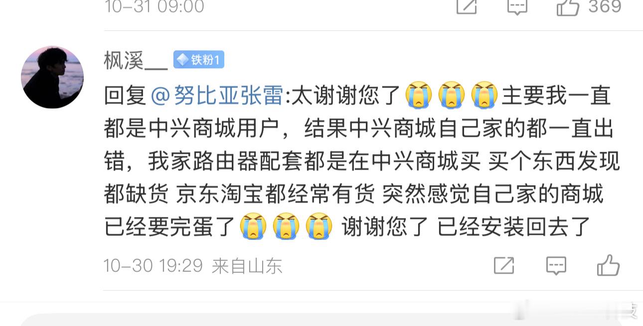中兴高管客服级回应用户吐槽有用户抱怨中兴墨水屏难抢的火药味刚出来,努比亚高管张雷不到一小时就亲自下场接单:“立刻改进”!两小时内,紧急调拨的新货就已上架。