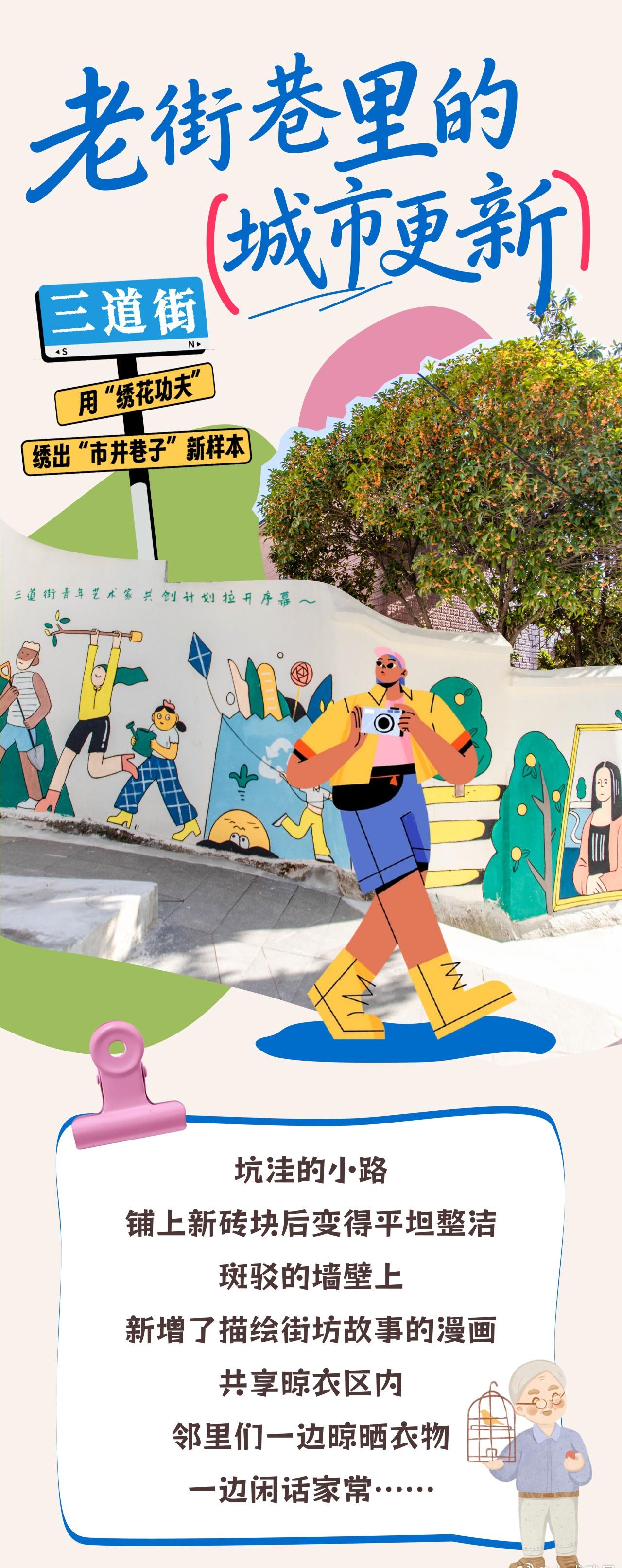 【武昌这条街爆红!就在黄鹤楼隔壁】在武昌区三道街漫步山道,前来打卡“漫画墙”的游客络绎不绝。历经大半年的精心打造,在多方协同的有序推进下,借助小微空间整治提升和老旧小区改造工程,武昌古城风貌区内三道街城市更新项目以“匠心营造、居民共创、学术赋能”的“绣花功夫”,绣出了“留得住乡愁、暖得了人心”的“市井巷子”新样本。网页链接