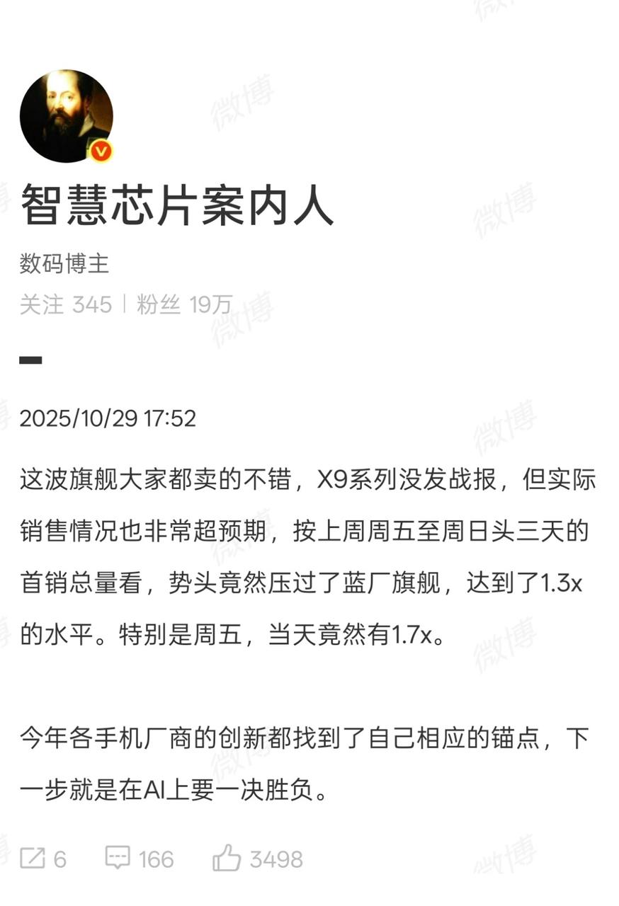 我说怎么经典的“新机首销战报环节”,今年家家都不搞,原来有的是不敢发,有的是没空发😂 其他家我不知道,但OPPO肯定是没空发的那个,毕竟首销一天卖15W台、10天卖100W台,再不去催催产能都快不够卖了,而且听说上一周OPPO同五的最高销量,超过了隔壁蓝厂,有隔壁1.7倍之多,平时都说“蓝绿蓝绿”,现在机圈应该反过来“绿蓝”才合适了,销量差辈了已经hhh OPPO OPPOFindX9 新机 热销 卖爆