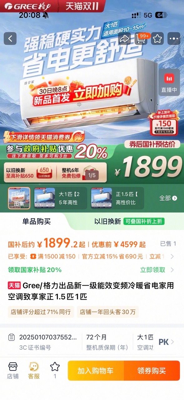 大牌保暖空调天猫国补历史最低价全国多地气温持续下降,冬季采暖需求应声攀升,空调等保暖设备销量显著上涨。天猫正式联合格力等国内主流空调品牌,启动保暖空调国补专项活动。双 11 期间,消费者登录淘宝平台,通过天猫官方旗舰店渠道选购,即可享受国补优惠,以历史最低价入手品牌新一代保暖空调。本次活动优惠力度空前,有家电选购需求的消费者可抓住窗口期,结合家庭实际需求择优选购,省心又省钱。