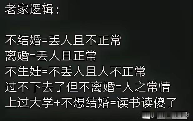 因为我老家就是河南农村的,所以说当我读到这段话的时候,我深有感触,因为上了大学,但是又不想结婚,人家都会觉得这个人脑子是不是有病,或者身体上是不是有什么毛病,或者说对女人是不是不感兴趣什么之类的,反正你只要不结婚,不生娃,你就是不正常就会成为别人啊眼中的笑柄,别人会想尽各种办法来嘲笑你,你没有办法阻挡别人的嘴,有的人是结婚好几年两个人就是不要孩子,别人会觉得是不是女方的问题,就从来没有想过是男方的问题,我们那就有现成的案例,两口子结婚了好几年,结果女生怀孕一直没有动静,他们觉得是女方的问题,最后闹了离婚,结果这个女方和另外一个男生在婚的时候立即就怀孕了,这都说明是男人的问题,因为这个男人可能是平常喜欢喝酒,喜欢酗酒,造成精子质量不佳,所以说才无法怀孕,因此的话,我们有的时候不要过于过度的去埋怨女生,抱怨女生有可能是男人的问题,但是老家的观念的话,你是没有办法改变的,所以说这是我为什么喜欢待在城市的原因,因为这里少一些风言风语,多一些尊重和独立!