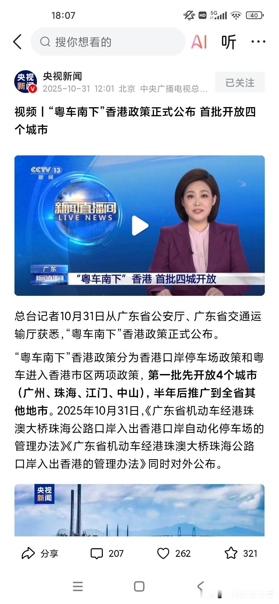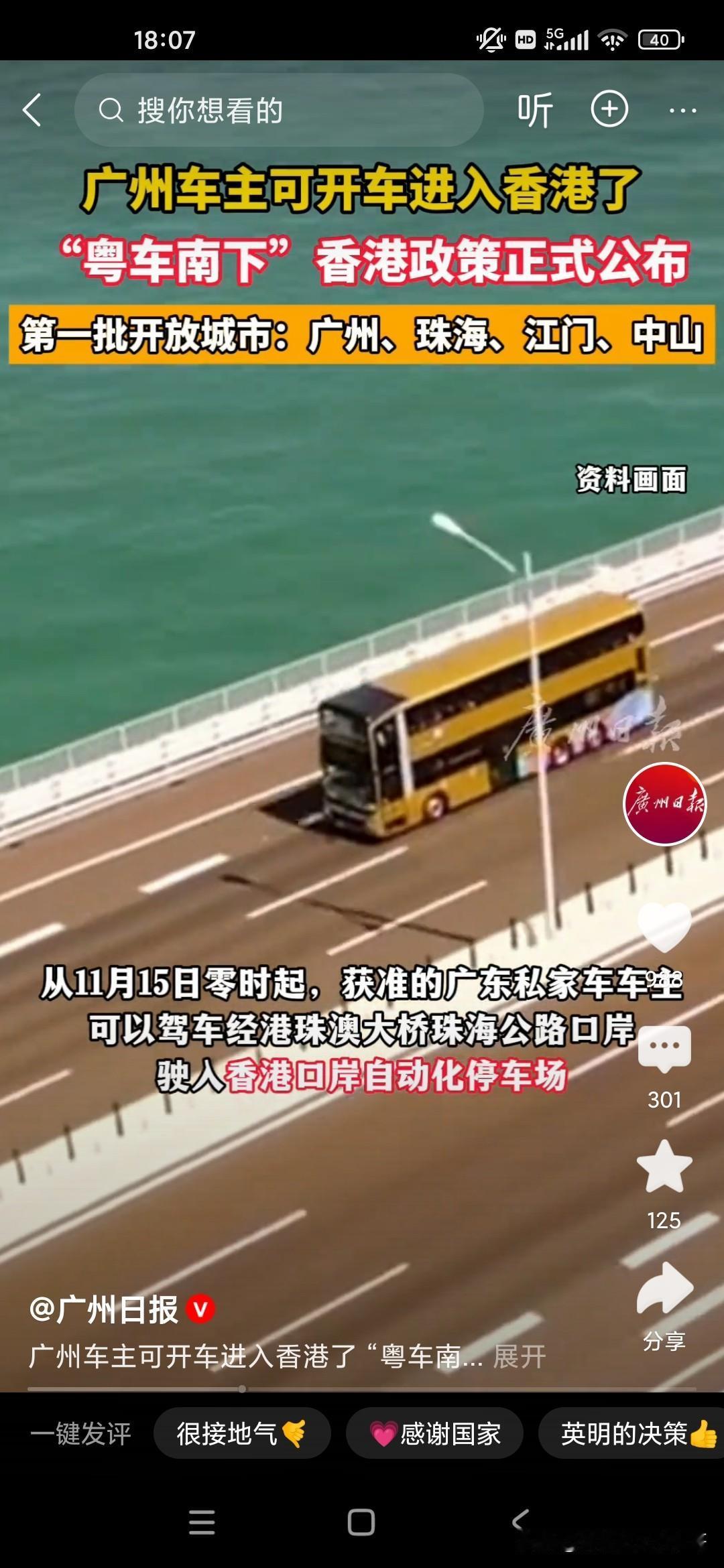 现在国家已经尝试广东的四个城市,分别是广州,珠海,江门,中山这四个城市的车牌,呃,车主可以开车去香港,这真的是一个极大的喜讯,因为之前我们港珠澳大桥我们总是抱怨我们建了一个百年工程,但是真正的通过率其实是很低的,很多人就迷惑我们,为什么要耗费巨资去建一个通过率这么低的这个港珠澳大桥呢?主要是因为在香港的话,他们受英国的影响,他们开车是靠左一侧,而在中国的话,我们是靠右一侧,驾驶习惯不太一样啊,第二的话是我们现行的法律,然后可能会有冲突,当然的话,我们大陆的车主如果开车到香港的话,可能要遵守香港的交通法律!现在国家放开以后的话,以后我们大陆会经常去香港,可能会更加促进这个香港和大陆的融合,加深与内地的联系!