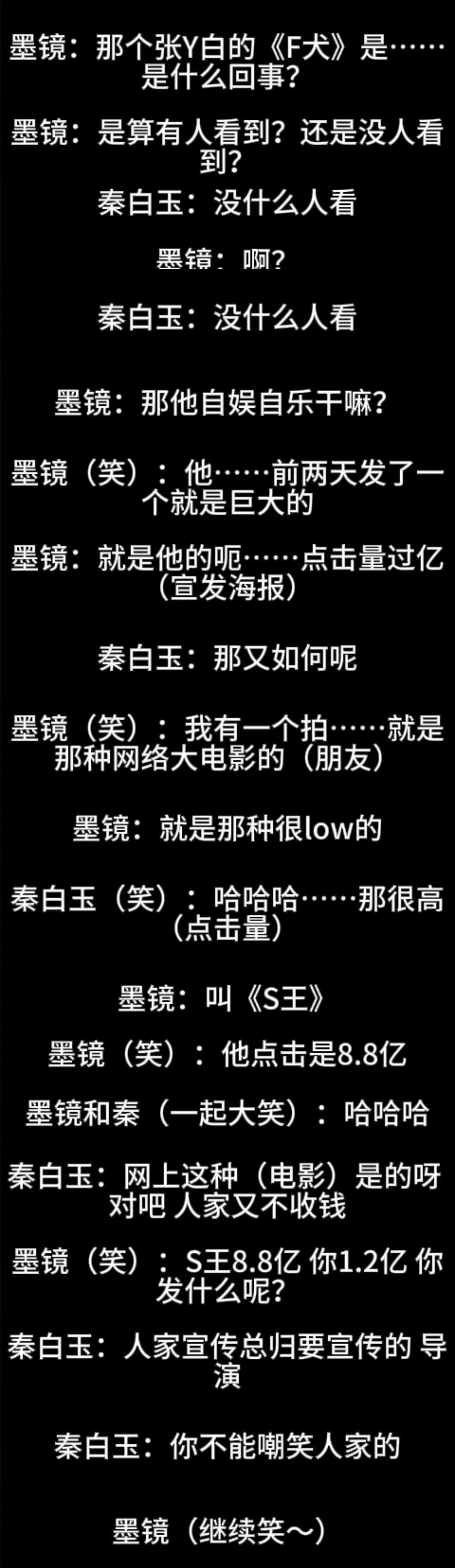 王家卫吐槽张一白《风犬少年的天空》没人看是自娱自乐,发了点击量过亿的宣发和网络大电影一样low[吃惊]