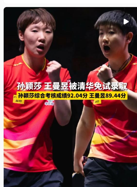孙颖莎王曼昱真的太优秀了! 今天清华公示2026年社会科学学院免试直硕名单,她俩都在里面。之前9月考核名单就有她们,现在拟录取了,本科还在上海交大读的,这成绩够扎实吧。 孙颖莎世界第一连续171周,巴黎奥运会拿了混双和女团金牌,王曼昱世界第二,巴黎女团也拿了金牌,打球这么拼还能兼顾学业,这才是真本事。 这样的成绩哪是随便能做到的?努力和天赋都在线,真让人佩服!