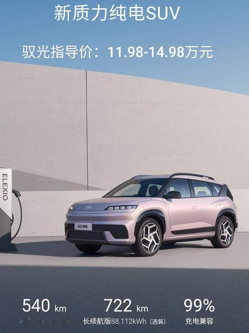 这就是赤裸裸的现实啊! 6%家庭,买50万元以上的车; 12%家庭,买20~50万元的车; 45%家庭,买10~20万元的车; 37%家庭,买10万元以下的车。 选择性价比高、实用性强、节能省钱的车主还是占多数。北京现代深谙用户心理,首款基于纯电平台打造的SUV EO羿欧售价11.98万元起。 EO羿欧值不值得买 10月29日,北京现代旗下首款基于纯电平台打造的紧凑型SUV——EO羿欧正式上市。新车共推出6款车型,售价区间为11.98 - 20.48万元。 外观上,EO羿欧采用全新设计语言。封闭式前脸搭配星环贯穿式灯带与独特大灯组,7种车身颜色供消费者选择。 全系标配27英寸一体式双联屏和赛博之眼前景显示系统,能将仪表信息投射至挡风玻璃下黑区,且有三种显示模式。 三辐平底式方向盘搭配怀挡式换挡,操作便捷,方向盘拨片还可切换动能回收和单踏板模式,内饰颜色有黑、米两色可选。 智能座舱搭载Bluelink系统,内置高通骁龙8295芯片,支持四区域语音识别唤醒、面部识别、手机APP远程控制等丰富功能。辅助驾驶达到L2级,18个智能传感器提供全速域自适应、车道保持辅助等支持。 动力续航上,提供两驱和四驱版本,电池组容量有64.3千瓦时和88.1千瓦时可选,CLTC纯电续航最高达722km,快充功能下,SOC 30%-80%仅需27分钟。底盘采用前麦弗逊式后五连杆式独立悬架。 为回馈消费者,2025年10月29日 - 11月30日购买EO羿欧,可享受暖心、随心、焕心、省心四重好礼,涵盖充电桩赠送、灵活金融方案、高额置换补贴和免费服务等内容。