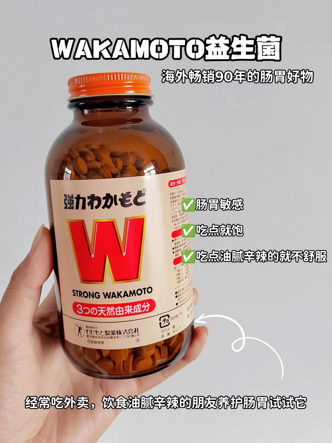 推荐伊能静也在吃的WAKAMOTO益生菌,是在海外畅销了90多年的内服好物,成分对肠胃友好: