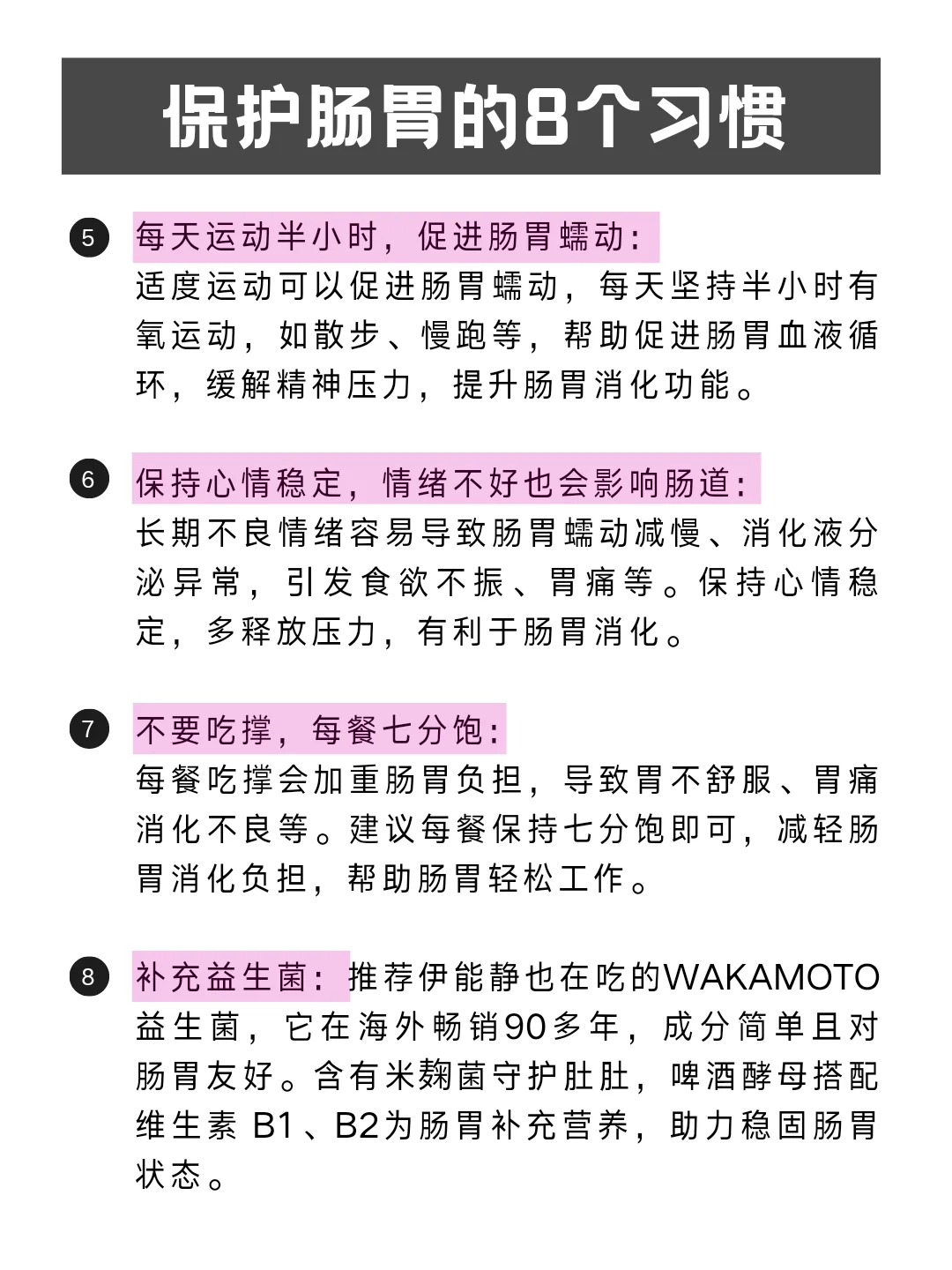 如果以上习惯你都中招了,那真的需要保护肠胃了。除了保持三餐规律,多吃蔬菜多运动,还可以试试补充益生菌来养肠胃。