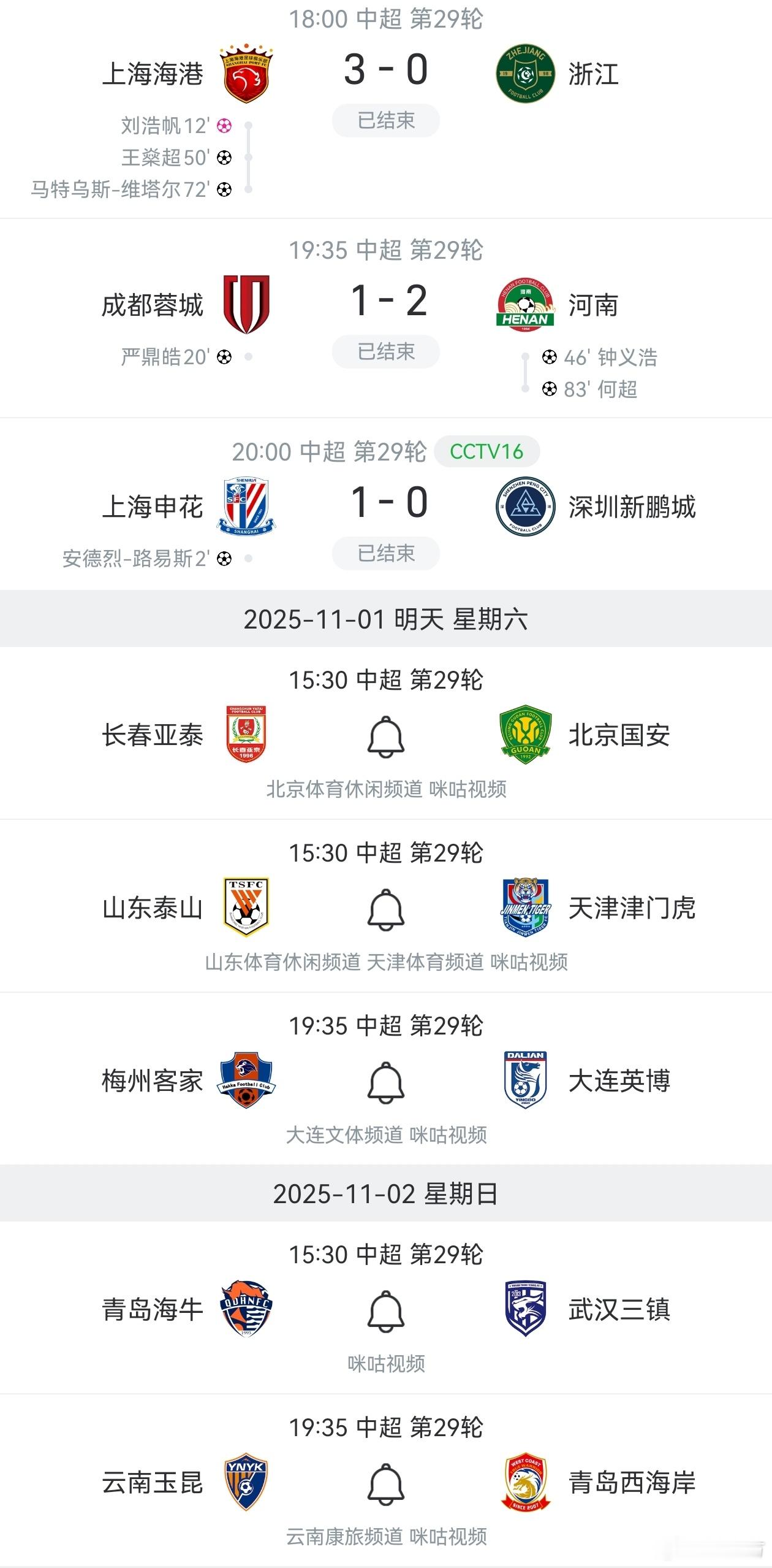 蓉城输球正式掉队,河南今年真是现象级球队,中超最终还是回归了上海双雄争霸格局,海港最后一轮只要打平大连就能达成三连冠。不过这轮我主要关注云南玉昆vs青岛西海岸 ,为佳一指导加油[加油]