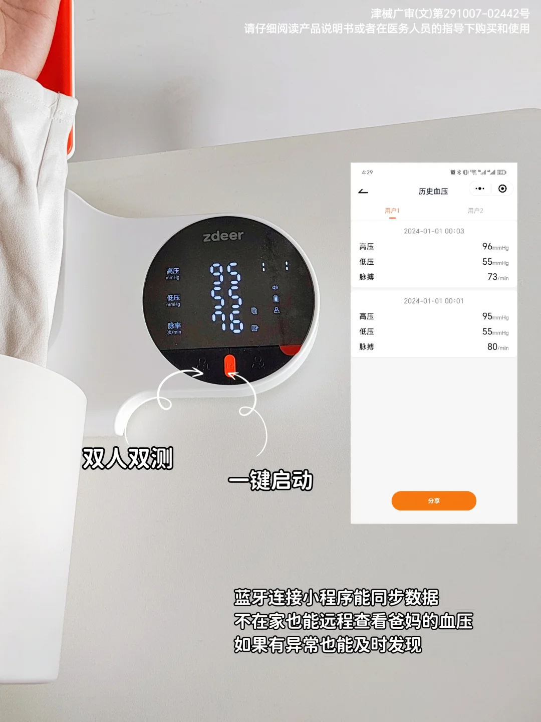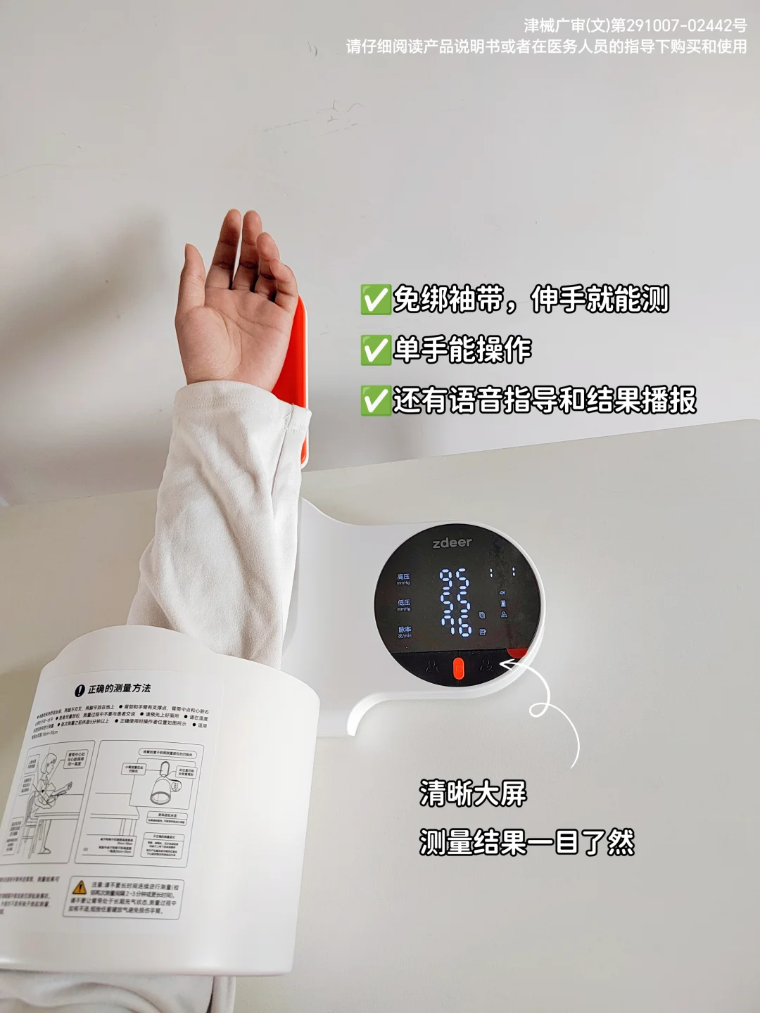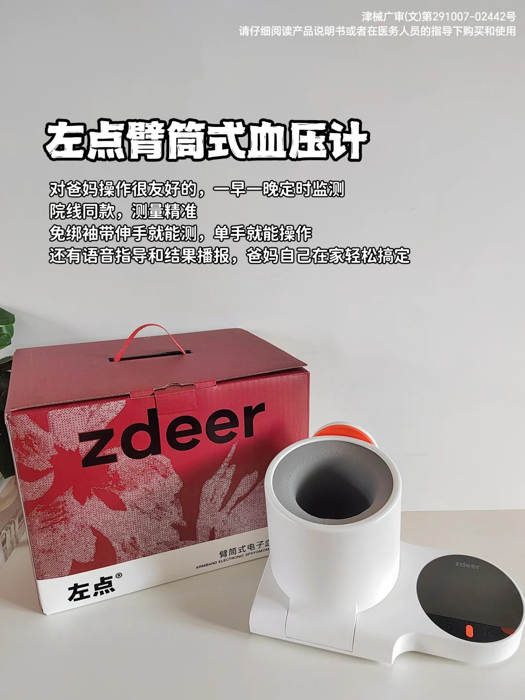 [二R]定期检测血压:可配置家用血压计,每天早晚各测量一次,记录数据,及时发现血压异常。家用血压计尽量选择对爸妈操作友好的,一早一晚定时监测。这个我自己也给父母买了的左点臂筒式血压计,操作超简单,免绑袖带,伸手就能测,单手就能操作。还有语音指导和结果播报,爸妈自己在家轻松搞定。测量上也相当精准,误差仅±3mmHg,是通过认证的计量器具,还是院线同款!