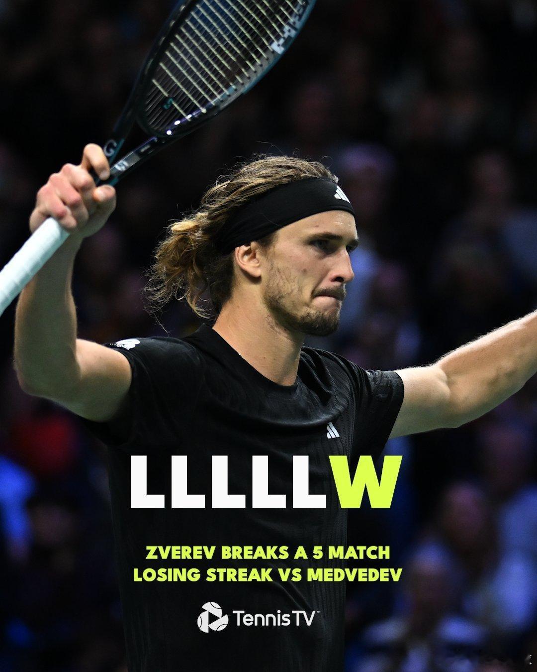 🇩🇪兹维列夫26,63,76(5)梅总🇷🇺,在5连败梅总后,终于获胜。