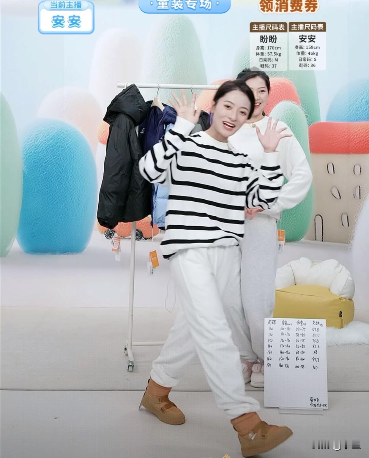 盼盼说每次跟安安交接班 她都会变得端庄一些[偷笑] 这么一看确实端庄了不少 只不过安安一走立马回归本色了 真羡慕她们上班上的如此快乐 身上也没有班味儿 每天都元气满满、神采奕奕的 她俩今天试穿的都是童装最大码 看着更加青春靓丽了 一个好的工作环境 对人的影响真大 董宇辉确实是个好的管理者 旗下8位主播全都比原来好了不止一点 肉眼可见的状态极佳 跟对领导事半功倍 希望这个团队越来越好[耶]
