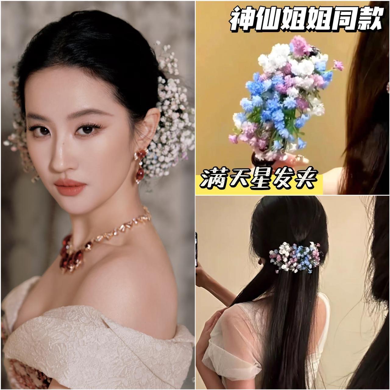 商家这嗅觉也太灵了吧! 神仙姐姐同款簪花发卡 居然 已经火速上线了!谁能想到刘亦菲的满天星簪花造型, 不仅让全网疯狂模仿,还直接带火了一波商机。这明星效应是真的顶, 只要是她带过的款,立马就成了美女们的心头好。重点是这发卡用永生花做的, 颜色清新又雅致,戴上妥妥的氛围感美女,完全长在审美点上。 其实好的造型从不是跟风,而是能让人看到美的可能性,商家恰恰抓住了这份对美的共鸣。 你已经入手神仙姐姐同款了吗?还是觉得更爱自己的专属风格?