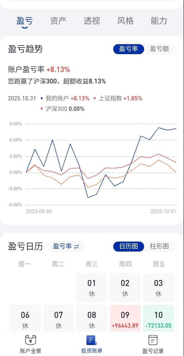大家觉得我吐槽三爱奶奶、年年妈是牛夫人等炒股网红的做法不妥,批评我不该指责她们炒股的方式不对。 部分头条朋友对我提出质疑,质问我凭什么这么说,还反问人家的方法不对,难道我的就对吗?要求我拿出证据让他们信服。今天我就把10月份的账户收益晒出来,以正视听。要是这还不够,我甚至可以把2025年全年的账户收益也晒给大家看。我并非想炫耀自己的业绩,主要是想告诉大家,炒股得找到合适的方法,不然就会南辕北辙。