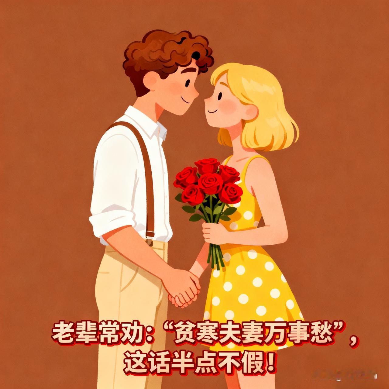手里有了钱, 夫妻和睦自然就来! 老辈常劝:“贫寒夫妻万事愁”, 这话半点不假! 你看那些不缺钱的家, 谁会为柴米油盐红着眼? 丈夫不用半夜想怎么凑家用, 回家能笑着陪老婆唠唠嗑; 老婆不用算着菜钱过日子, 对老公哪会有那么多埋怨? 碰到事儿了,有钱能解决大半, 谁还会互相指责? 哪有那么多相处门道啊! 说白了—— 钱包鼓了,心情顺了, 对彼此的耐心自然就多了。 没钱的时候,再深的感情, 也经不住现实磨啊!