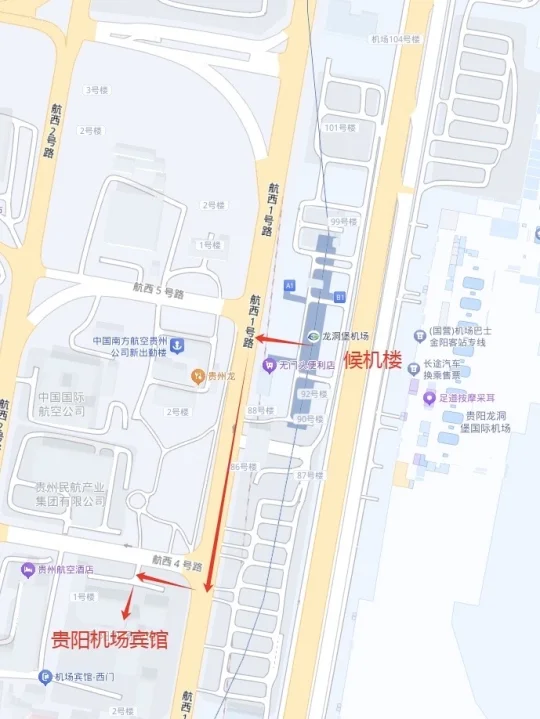 ☑️贵阳机场提供的免费中转住宿酒店有一个,位于机场对面的【机场宾馆】。