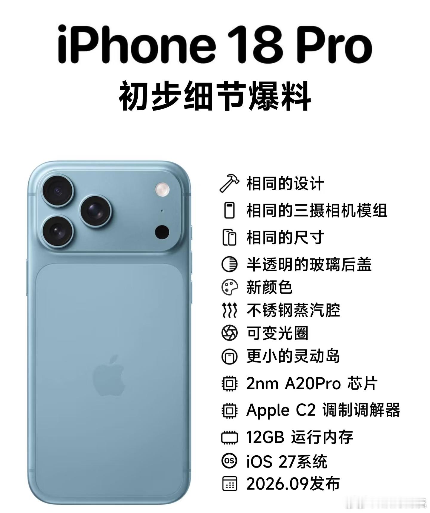 iPhone18Pro前瞻不是,为什么iPhone17系列不出这几个颜色啊!我猜iPhone18外观变化不大,也就换换新色,然后灵动岛变小了一些!个人比较期望能够把钛金属用回来,现在的铝合金是真软啊,一磕一个坑![泪奔]
