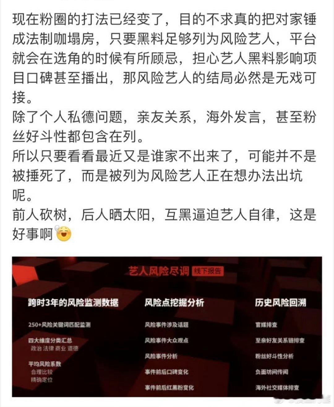 昨天坐实了存在艺人风险名单的事情以后,给艺人做尽调又一次被提起了……