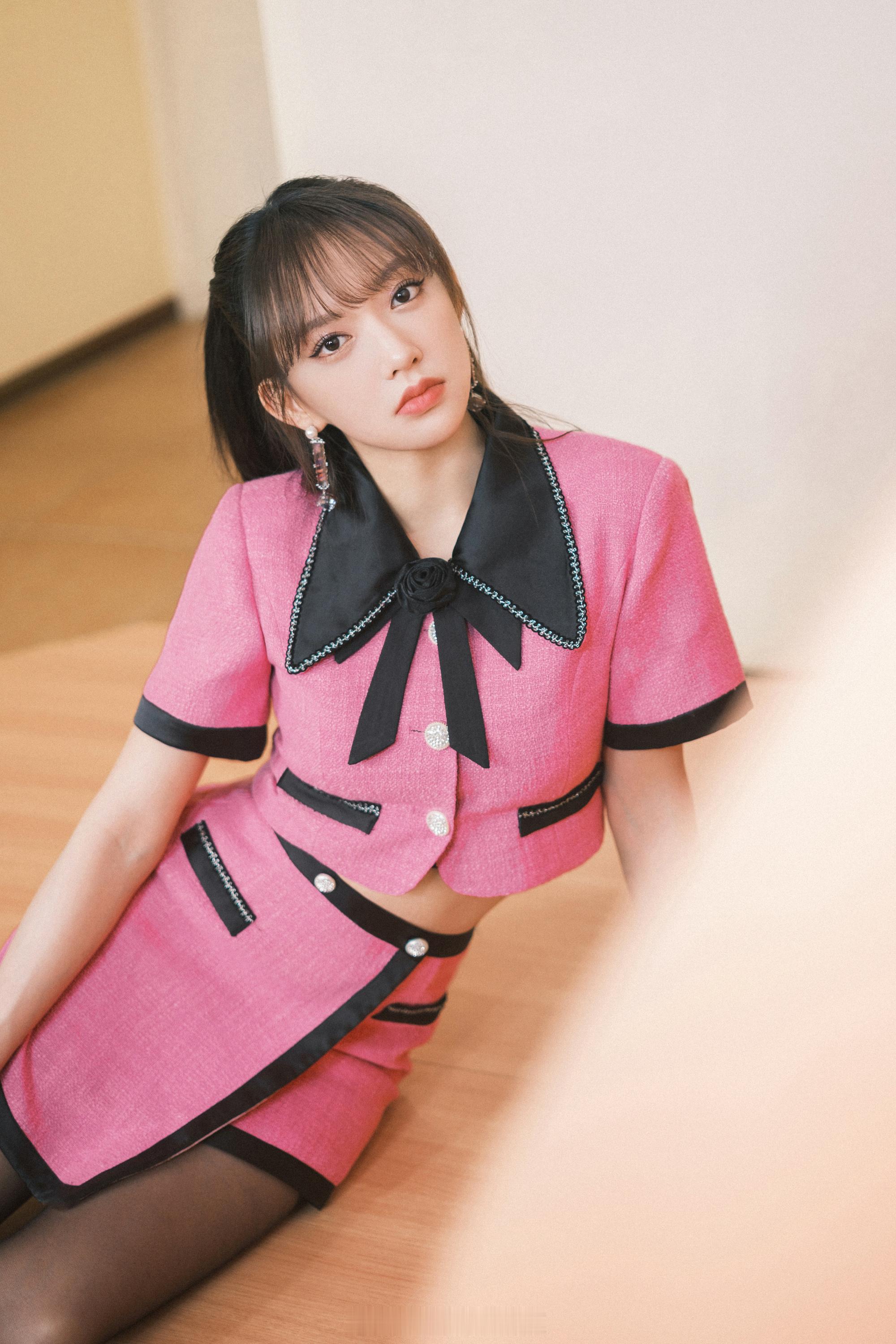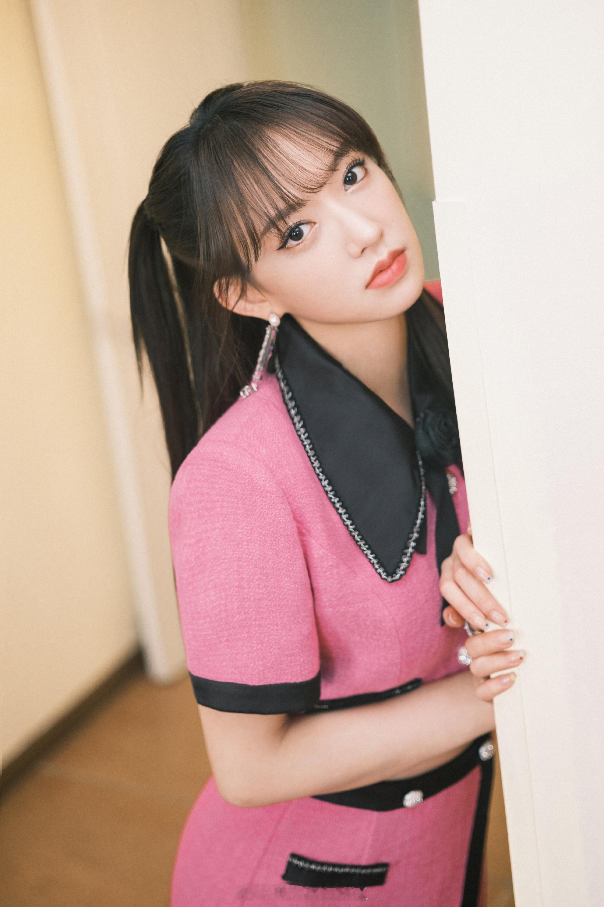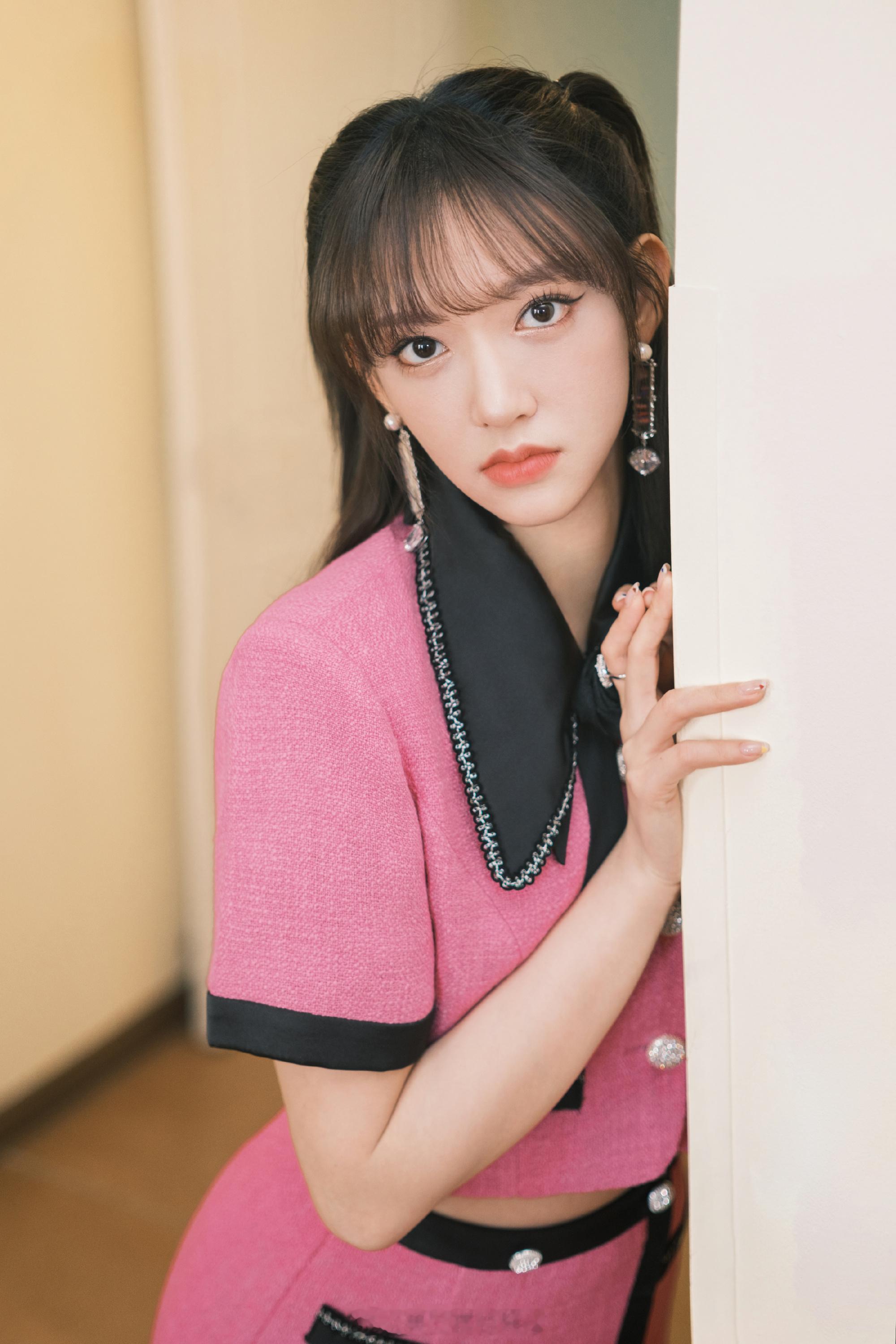程潇玫红小香风穿搭
