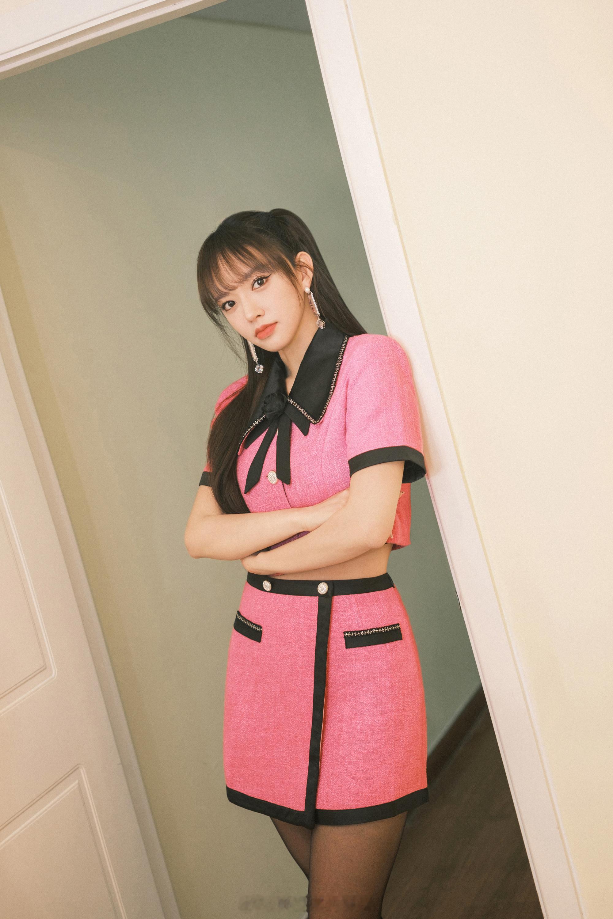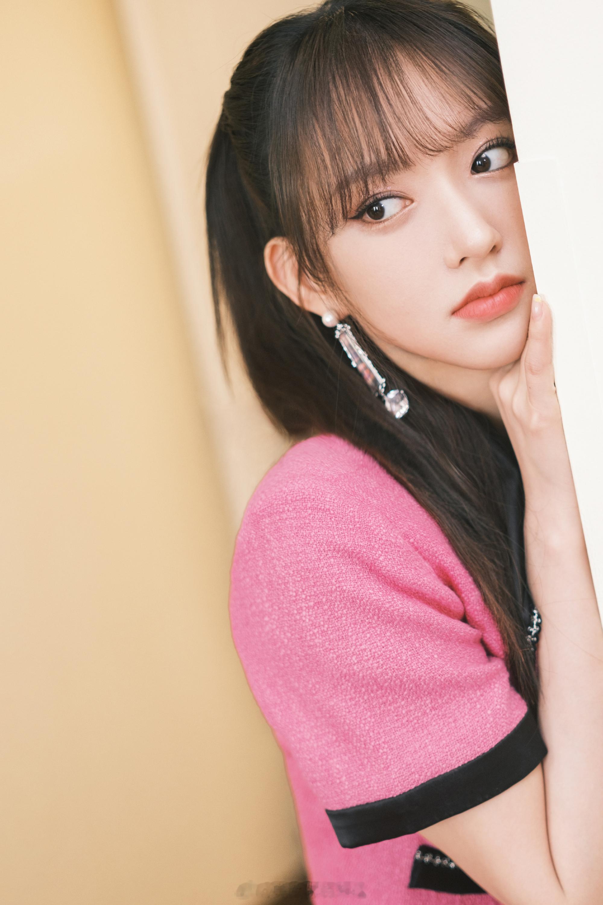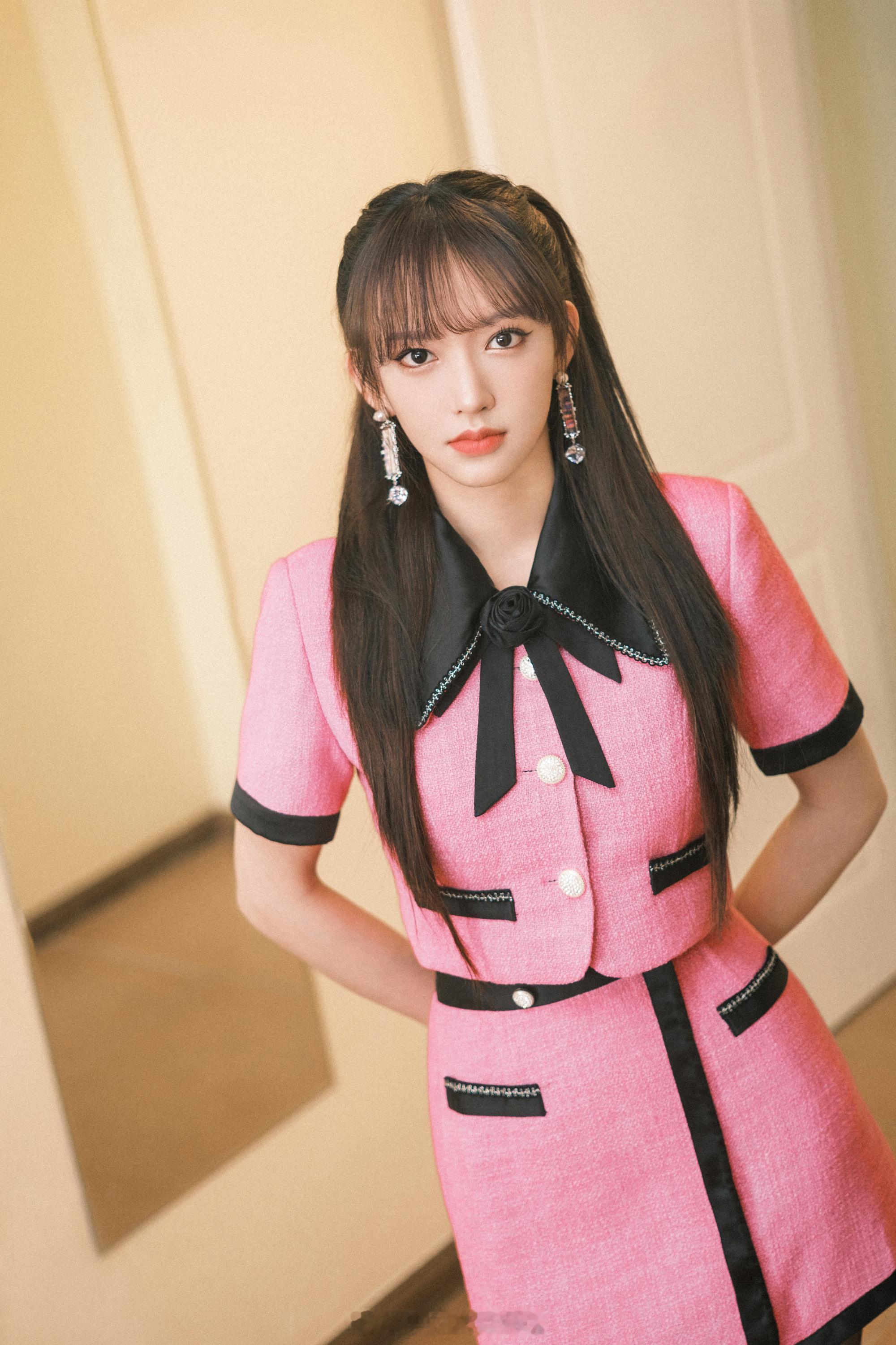 程潇玫红小香风穿搭