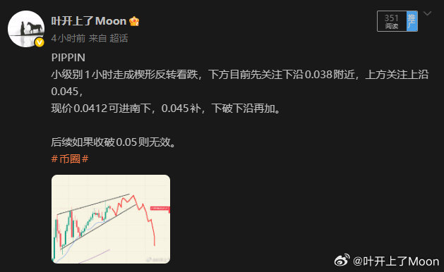 PIPPIN小级别1小时走成楔形反转看跌,下方目前先关注下沿0.038附近,上方