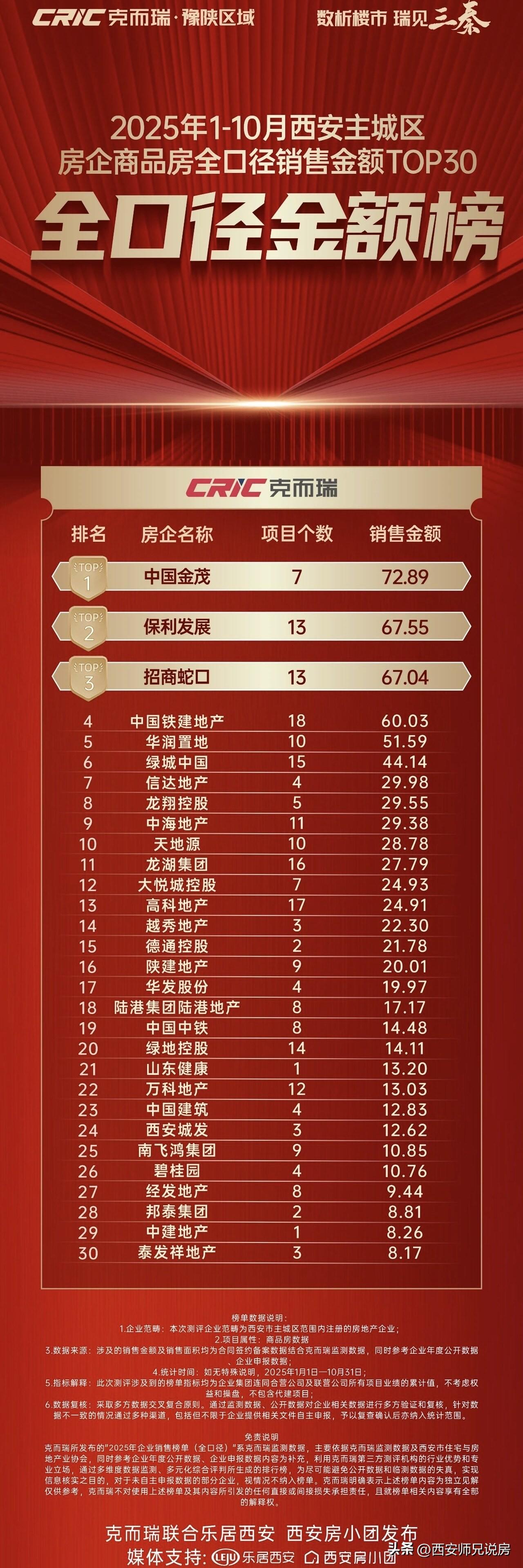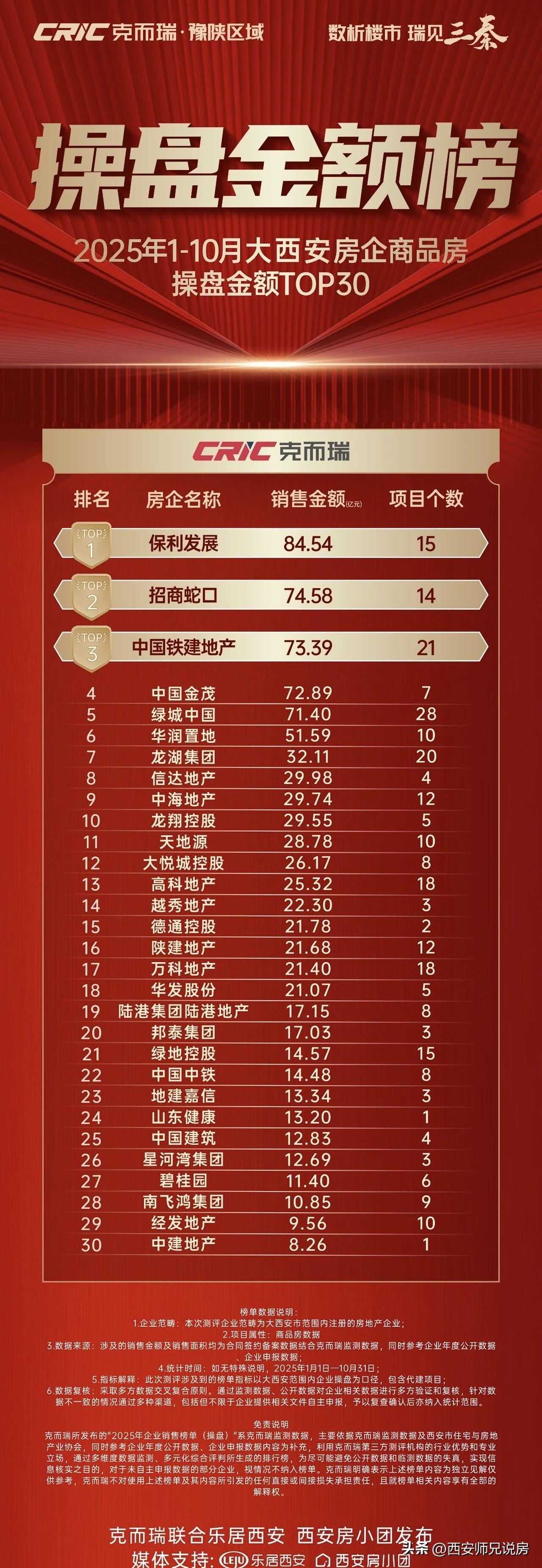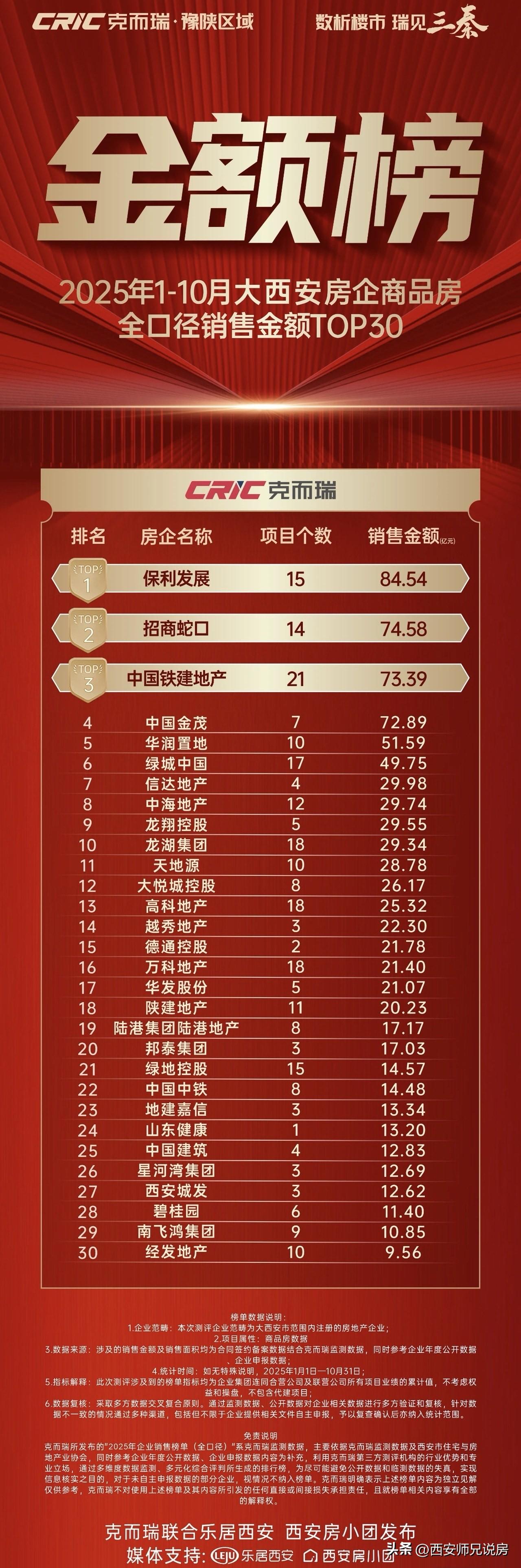 2025年1~10月份西安商品住宅销售业绩榜单出炉了,买房的朋友可以参考一下!西安楼市 西安买房 西安房价