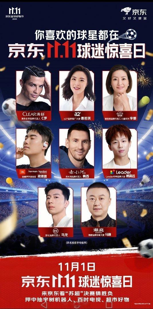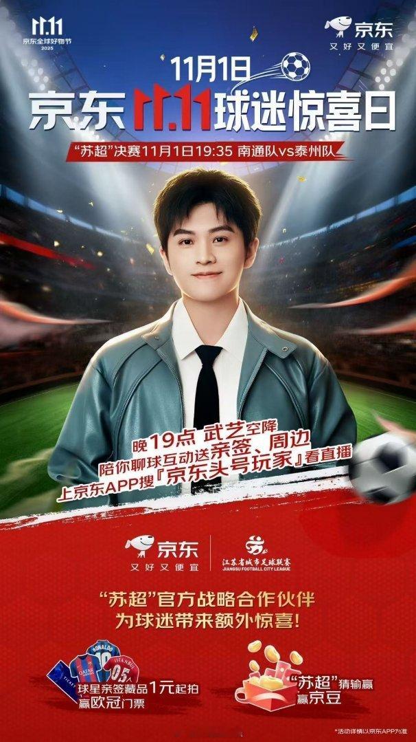 📺 作为苏超官方战略合作伙伴,京东今天重磅推出11月1日京东11.11球迷惊喜日,为广大球迷朋友带来一波沉浸式观赛体验。不仅可以1元竞拍梅西等众多球星稀缺球迷藏品、还可以参与决赛竞猜赢取宇树机器人、百吋电视、超市好物等,在直播间还可以与球迷武艺线上互动 !