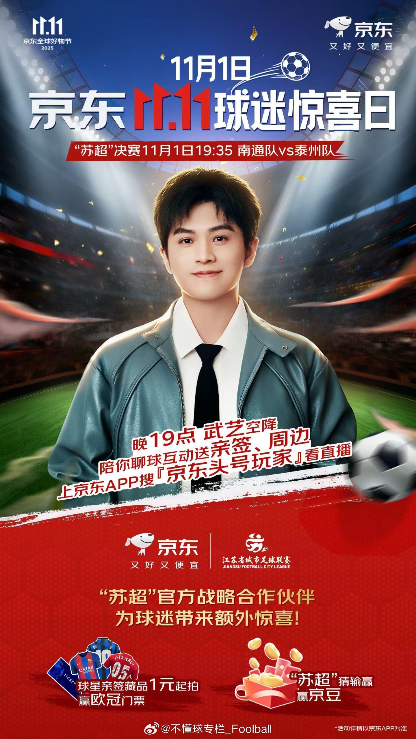 京东苏超决赛直播 热热闹闹的苏超,也走到了决赛日的一天。而今天不仅是苏超决赛,也是11月1日京东11.11球迷惊喜日