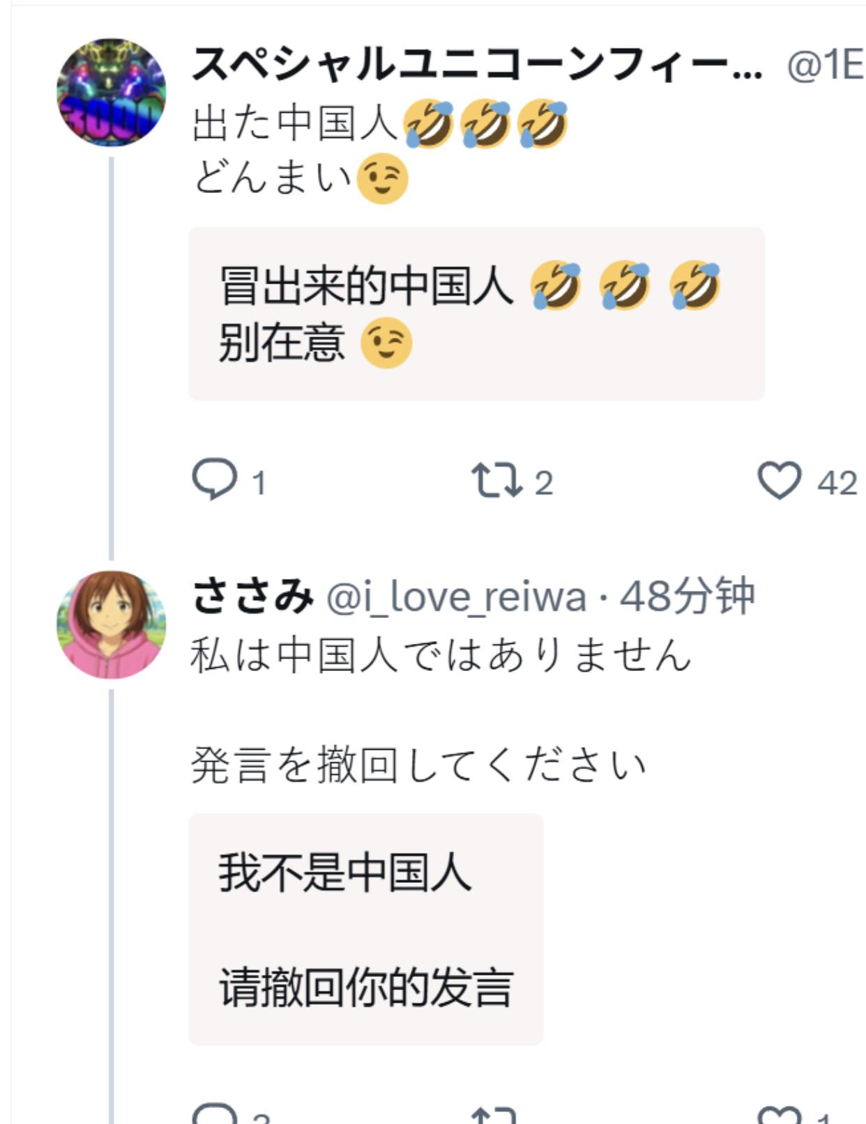 一名日本网民对高市早苗表现出强烈不满,言辞激烈地表达了对其奉承姿态的反感。随后,评论区迅速涌入大量日本网络右翼用户,纷纷以“你是中国人吧?”“宁可当美国的狗也比当中国的强”“你喜欢当哪国的狗?”等言论展开攻击。于是,争论焦点逐渐转向“日本究竟算不算附庸”“到底谁在依附谁”“你又是谁的依附者”这类“深刻”议题。