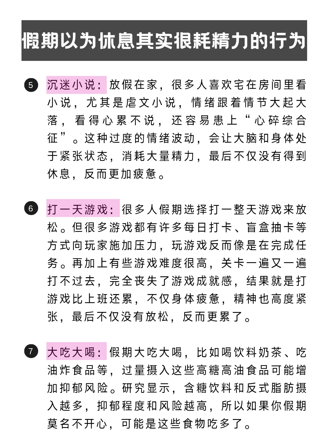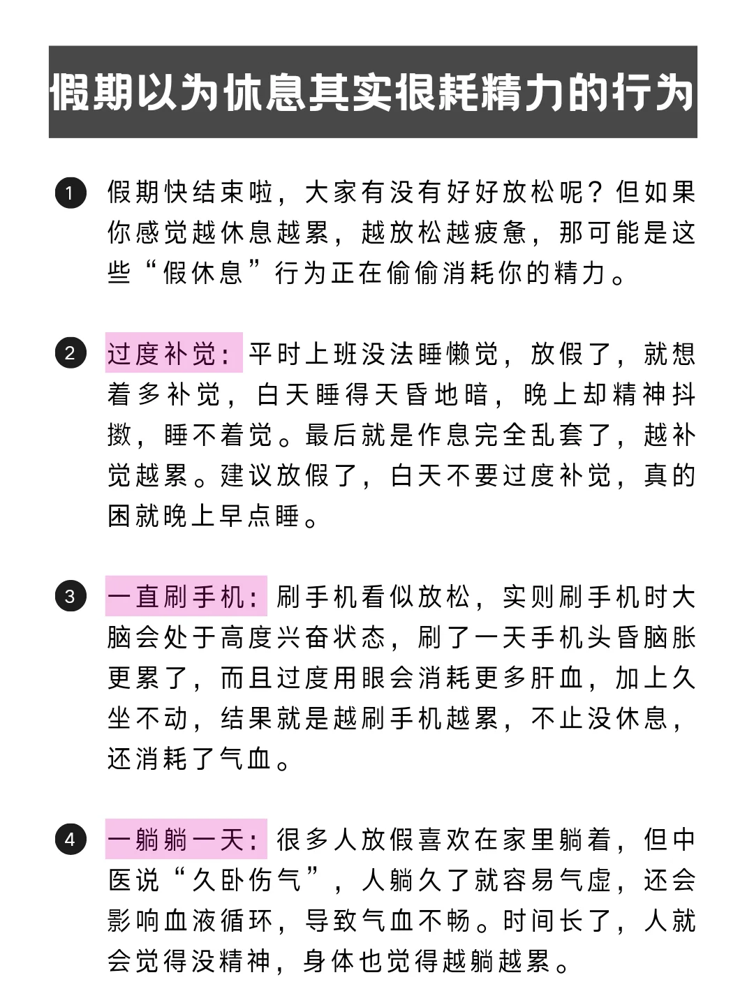 假期快结束啦,大家有没有好好放松呢?但如果你感觉越休息越累,越放松越疲惫,那可能是这些“假休息”行为正在偷偷消耗你的精力,看看你有没有中招?