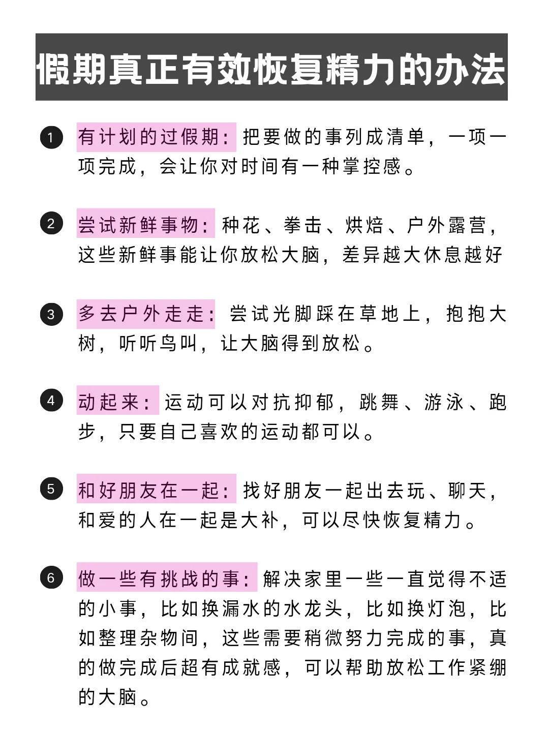 还有真正有效恢复精力的6个办法:
