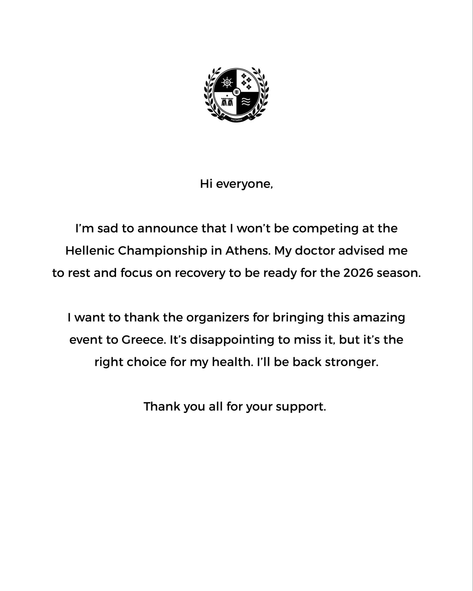 西西帕斯退出本土的ATP250雅典赛