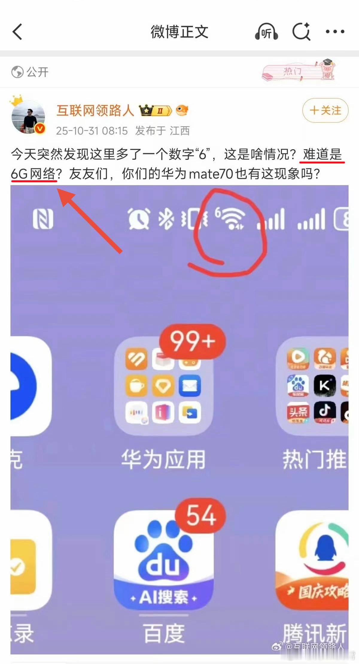 不是,这人确定是认真的么,WiFi图标上有个“6”,就认为这是6G网络,这也能是互联网领路人?[费解][允悲]
