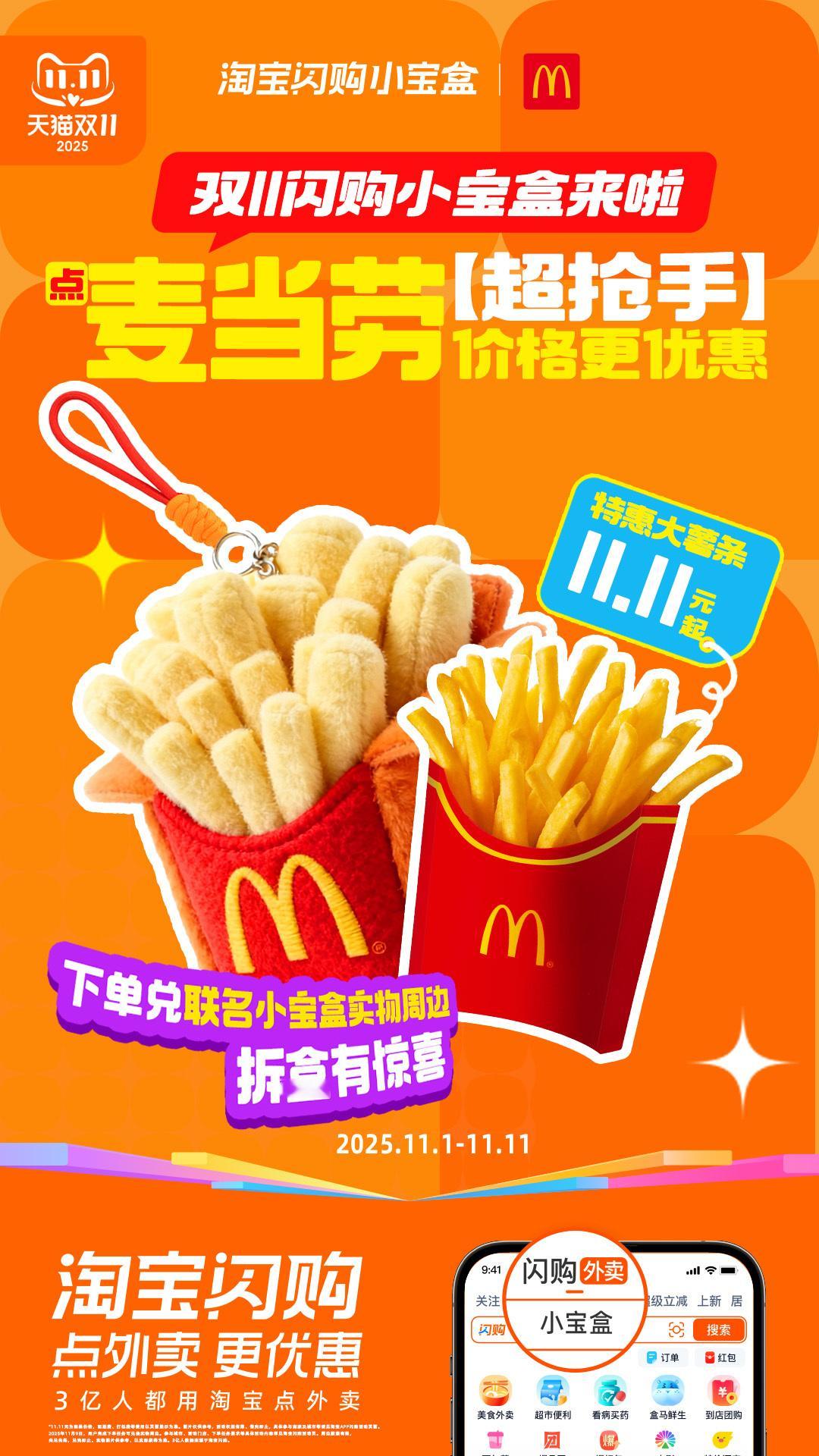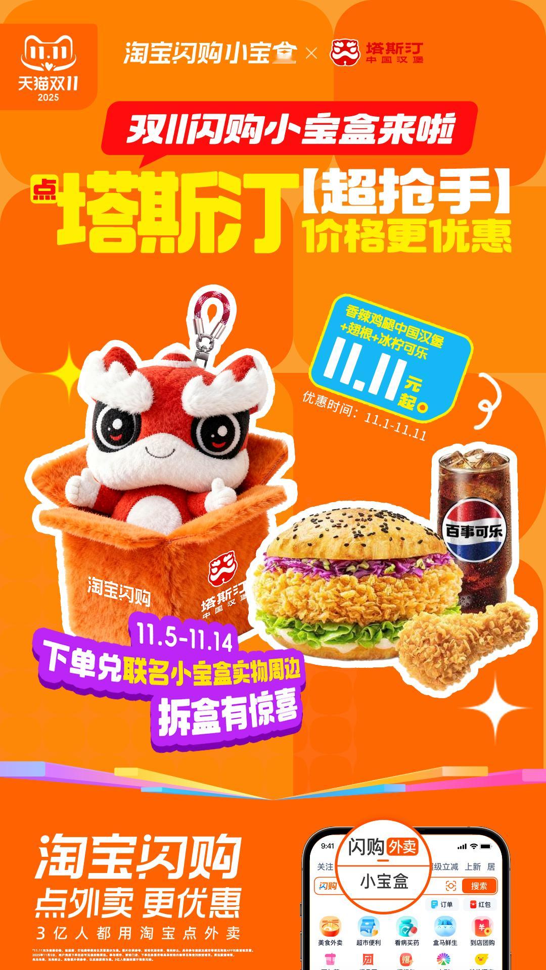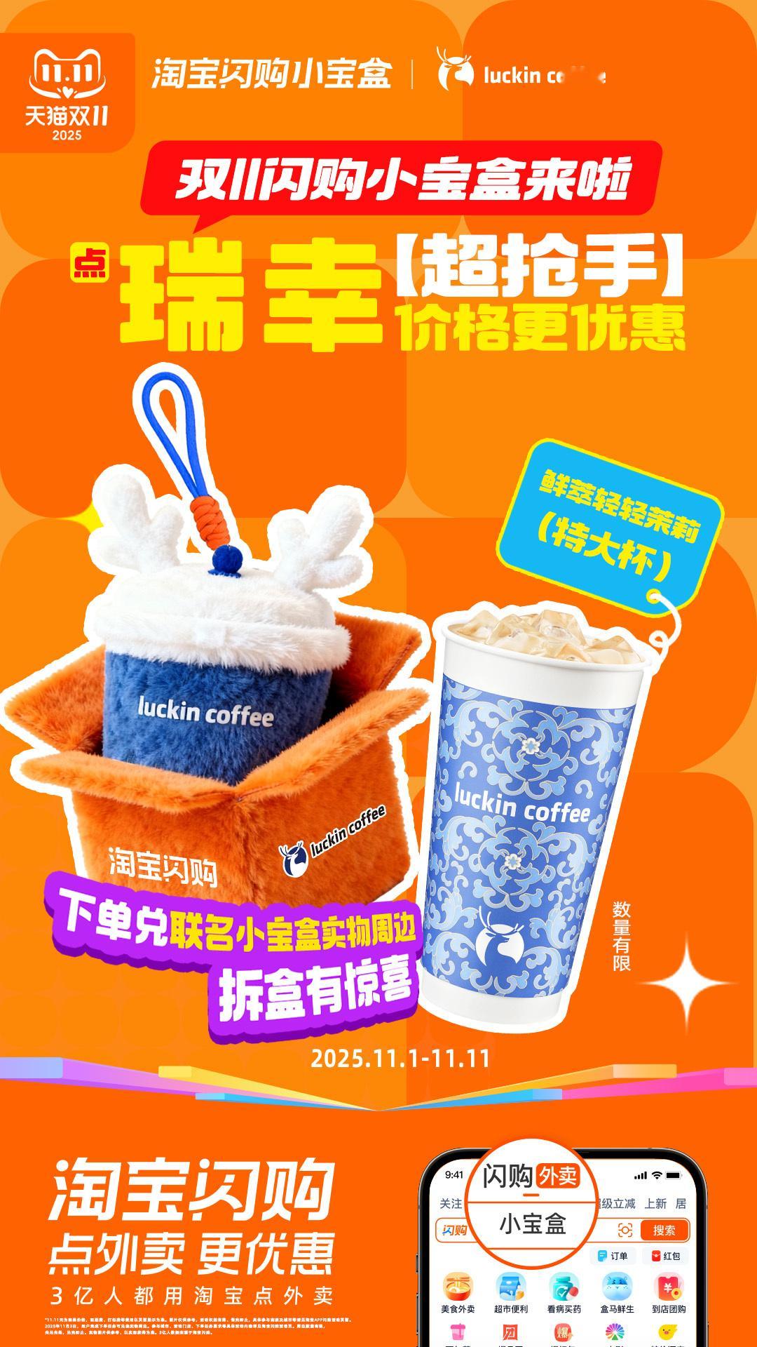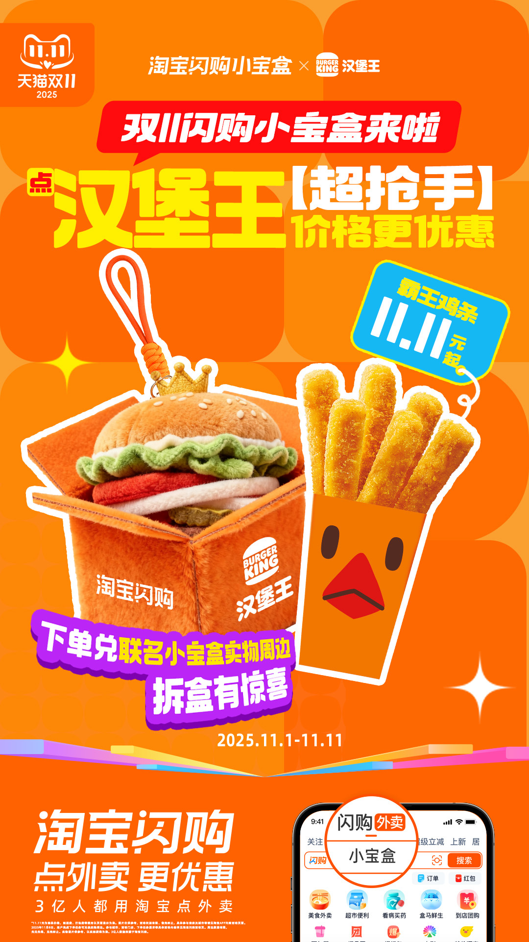 11.1-11.10上淘宝闪购搜索「小宝盒」,每日一个品牌专属会场,下单指定品牌,实付满额,即有机会参与兑换周边。11.11日进入活动页面按提示完成操作即可参与抽奖,不仅有机会赢取品牌限定周边,还有隐藏款小宝盒等你拿!更有11.11元起的大牌美食,超抢手价格更优惠哦。这波治愈系暴击,我先抢为敬!