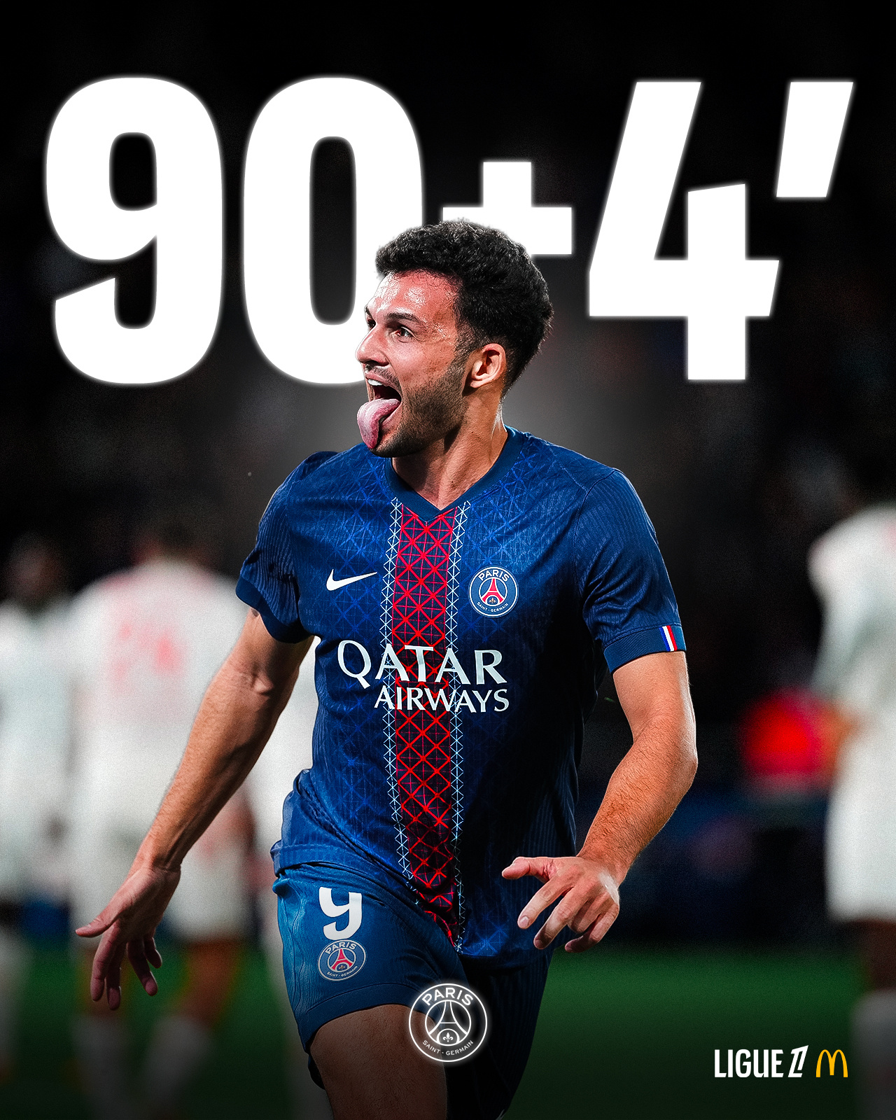法国足球甲级联赛第11轮,巴黎圣日耳曼坐镇主场迎战尼斯。上半场,克瓦拉茨赫利亚贡献门线解围;下半场比赛补时阶段,贡萨洛-拉莫斯读秒破门,为球队攻入制胜一球。凭借此粒进球,巴黎圣日耳曼以1-0战胜对手,全取三分。