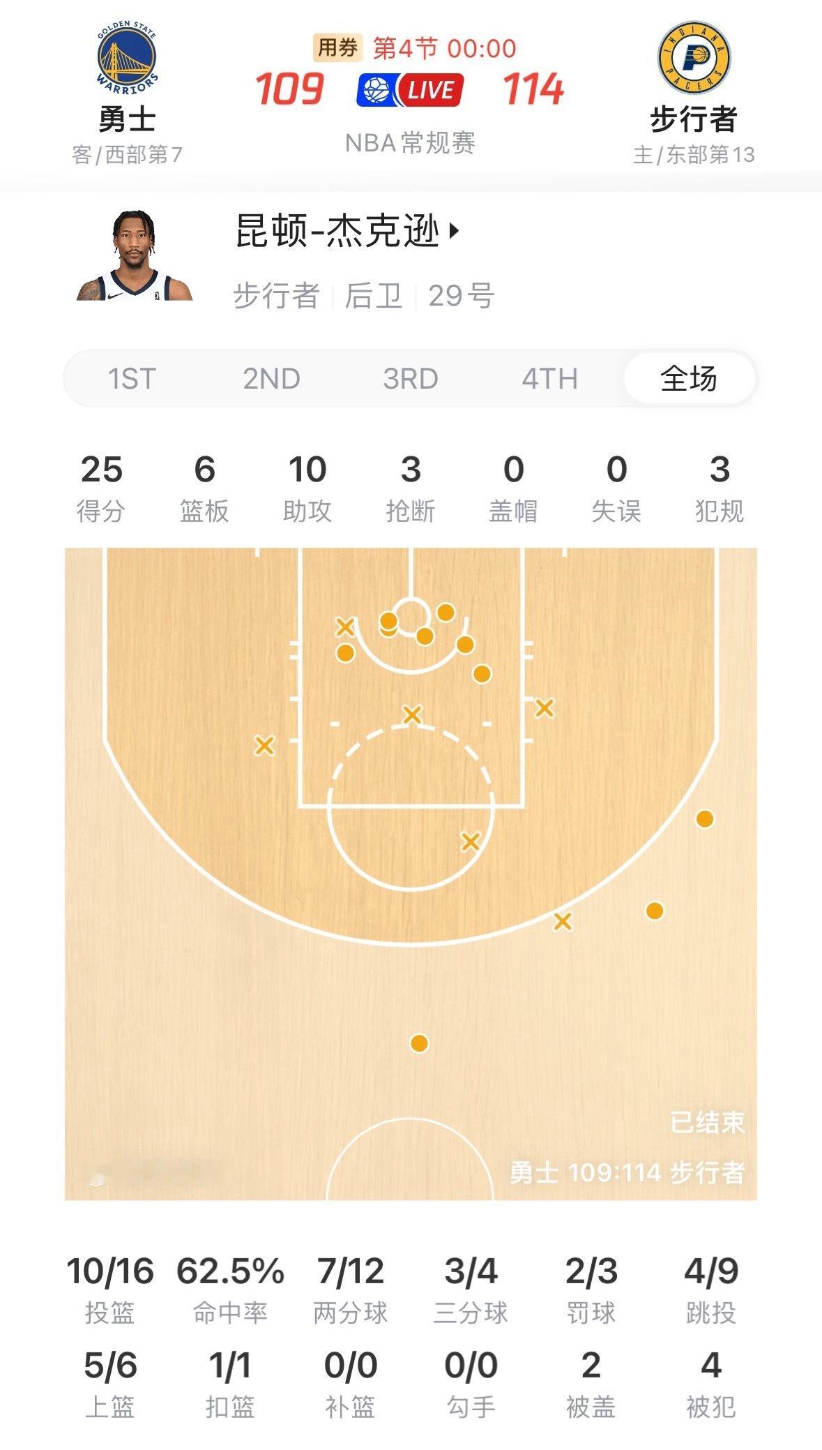 昆顿-杰克逊25分6板10助攻0失误,正负值+20。1998年出生,193cm/79kg。