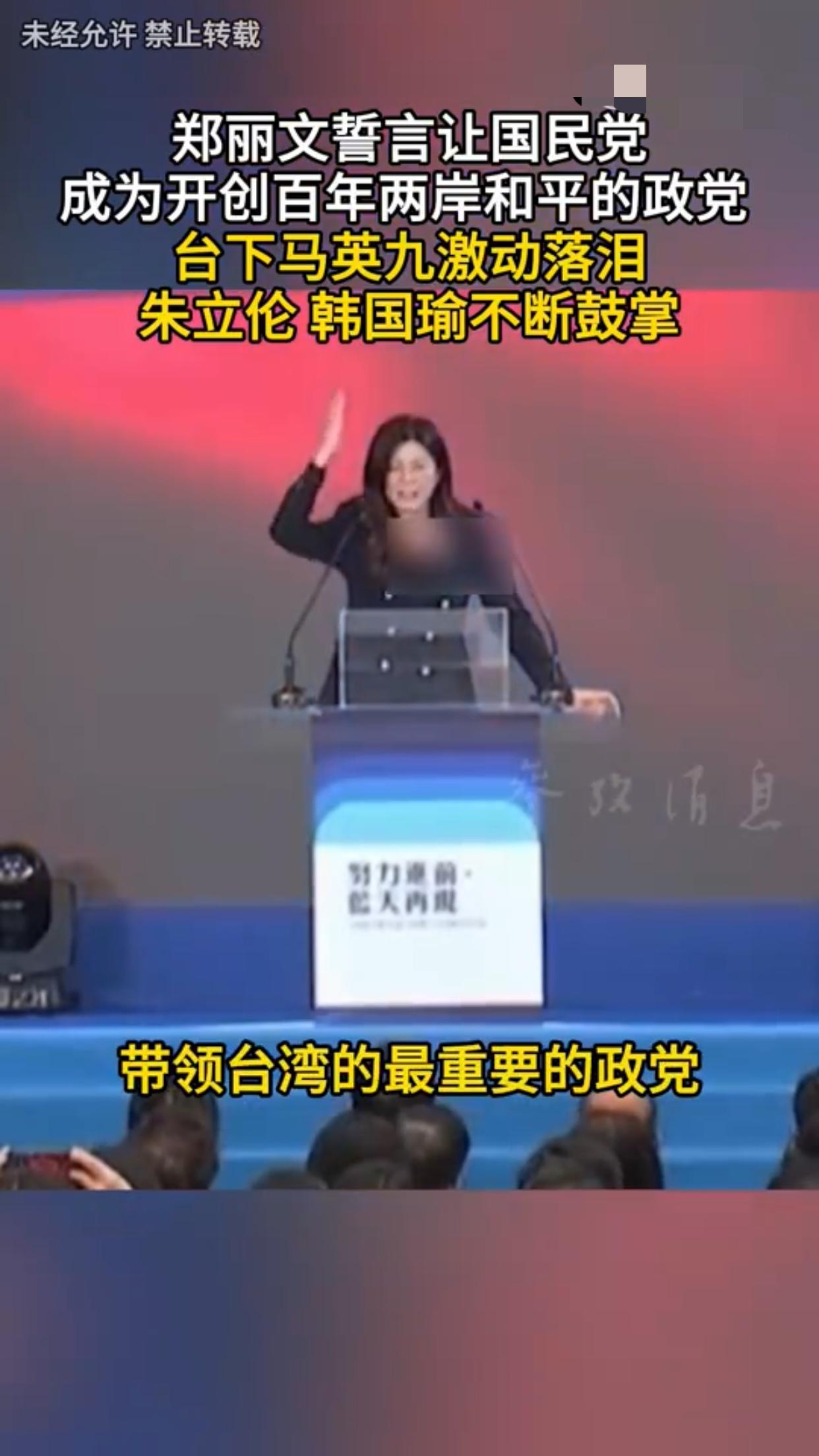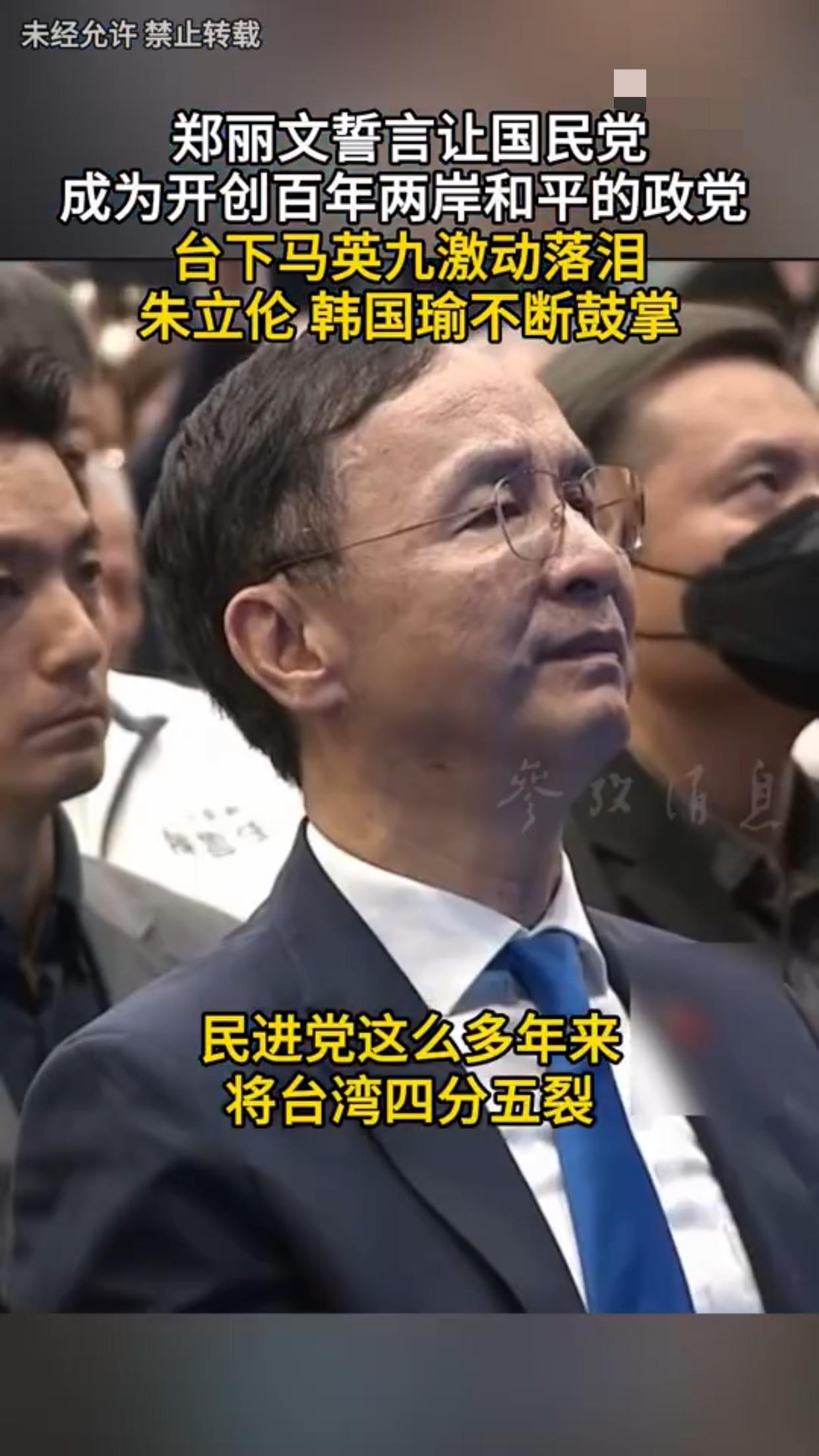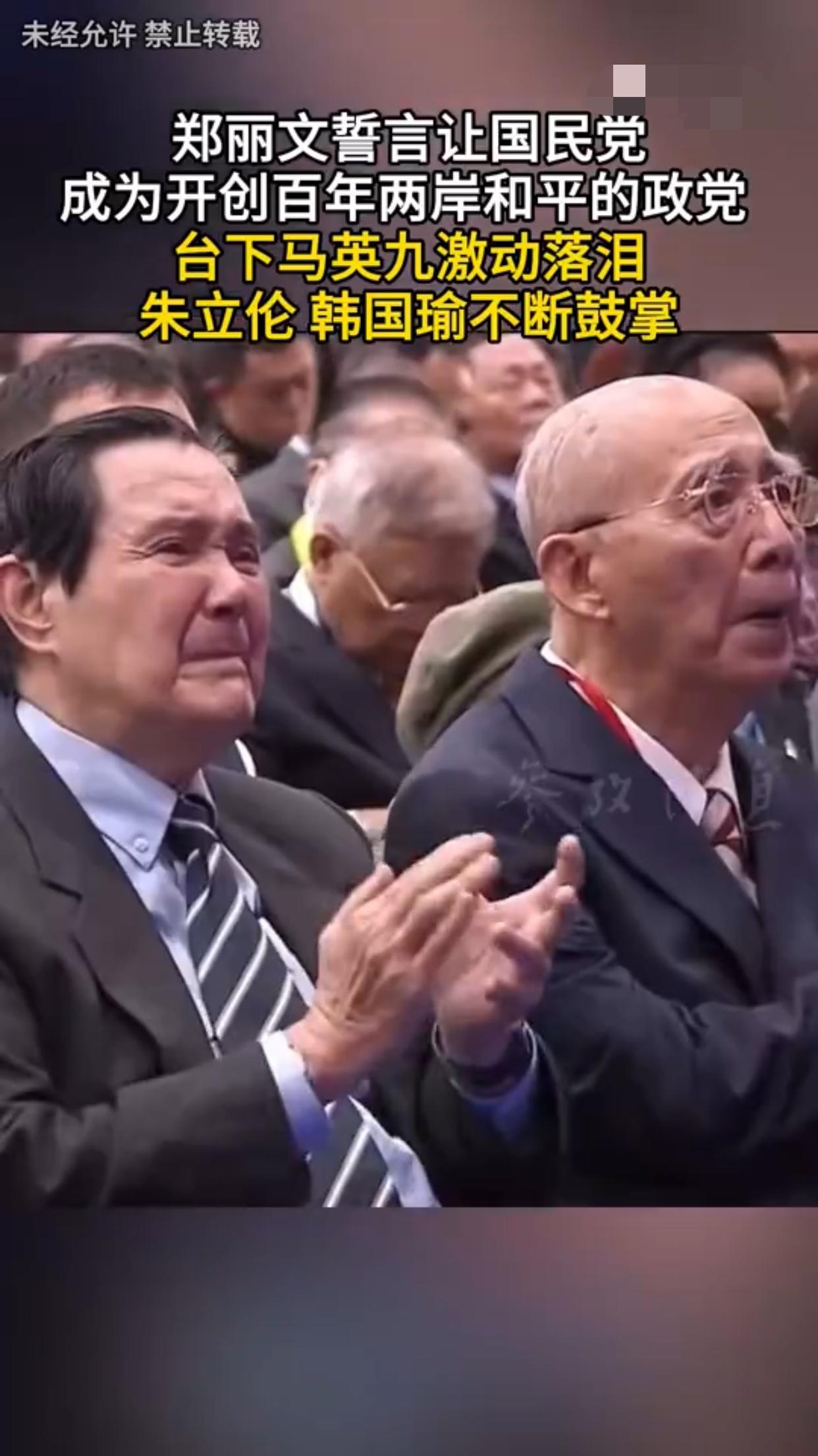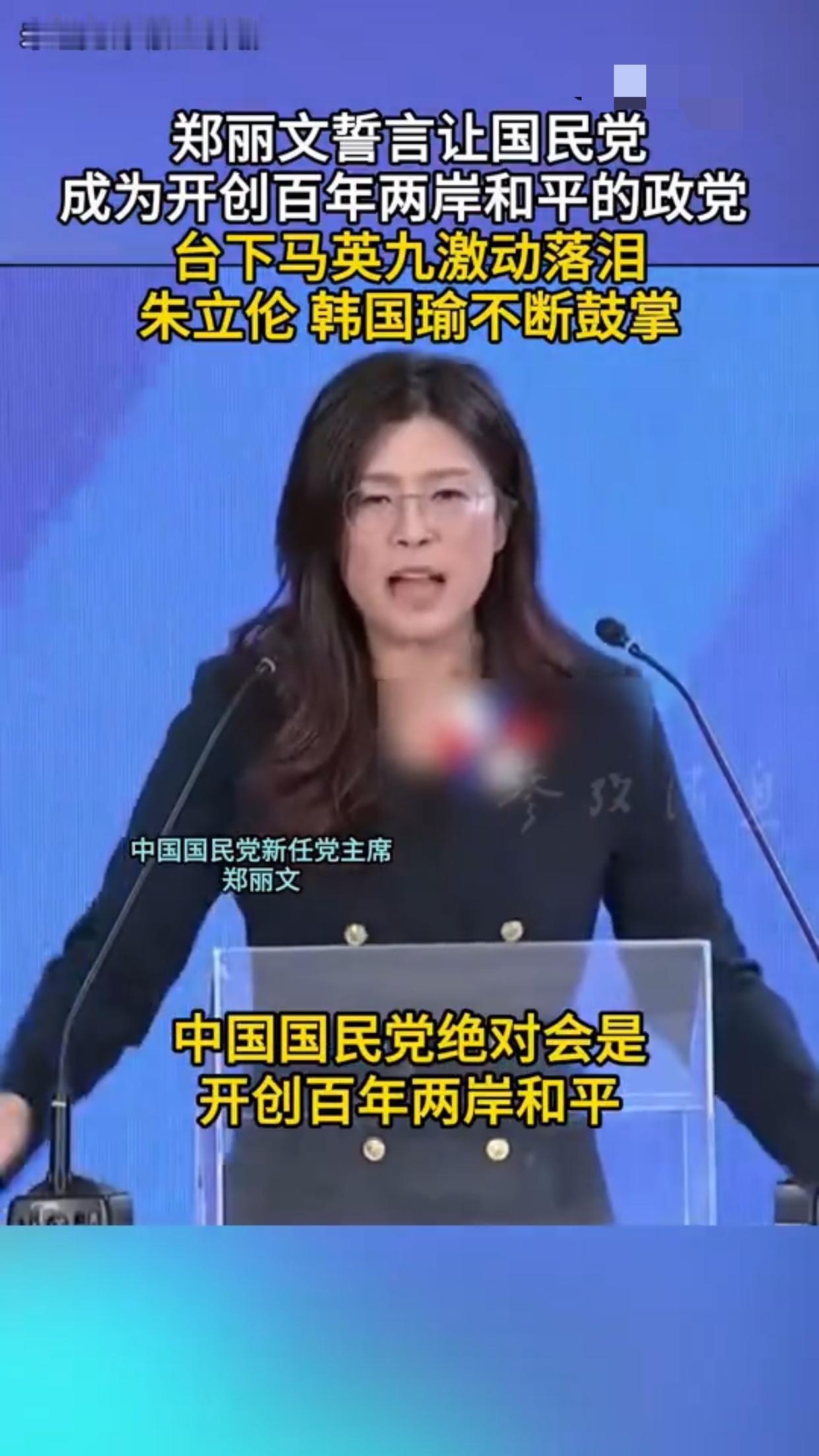 台湾国民党郑丽文表示:“民进党这么多年来将台湾四分五裂,国民党绝对会是开创百年两岸和平,带领台湾的最重要的政党。” 台下马英九、朱立伦 、韩国瑜等人感动流泪,纷纷鼓掌支持。