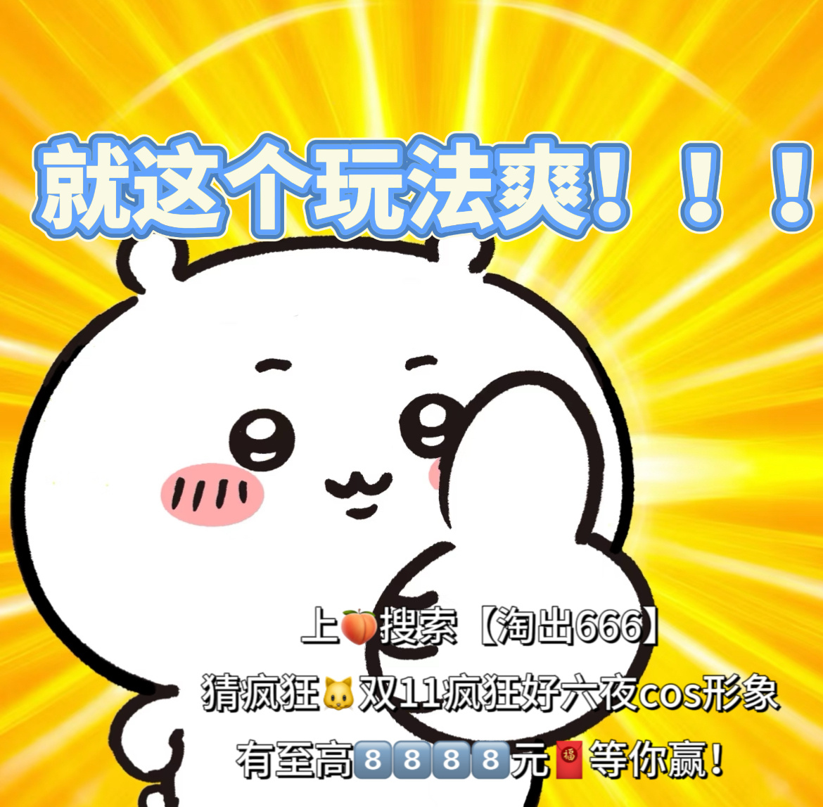 天猫双11疯狂好六夜看到这份攻略图我只想说——🐱双11疯狂好六夜你是会going我的!!即日起-11月10日15:59上🍑搜索【淘出666】猜天猫双11疯狂好六夜cos形象,就有机会赢《你好星期六》录制门票🎫和至高8888🧧,任何一个人错过我都会很伤心的OK!?天猫双11
