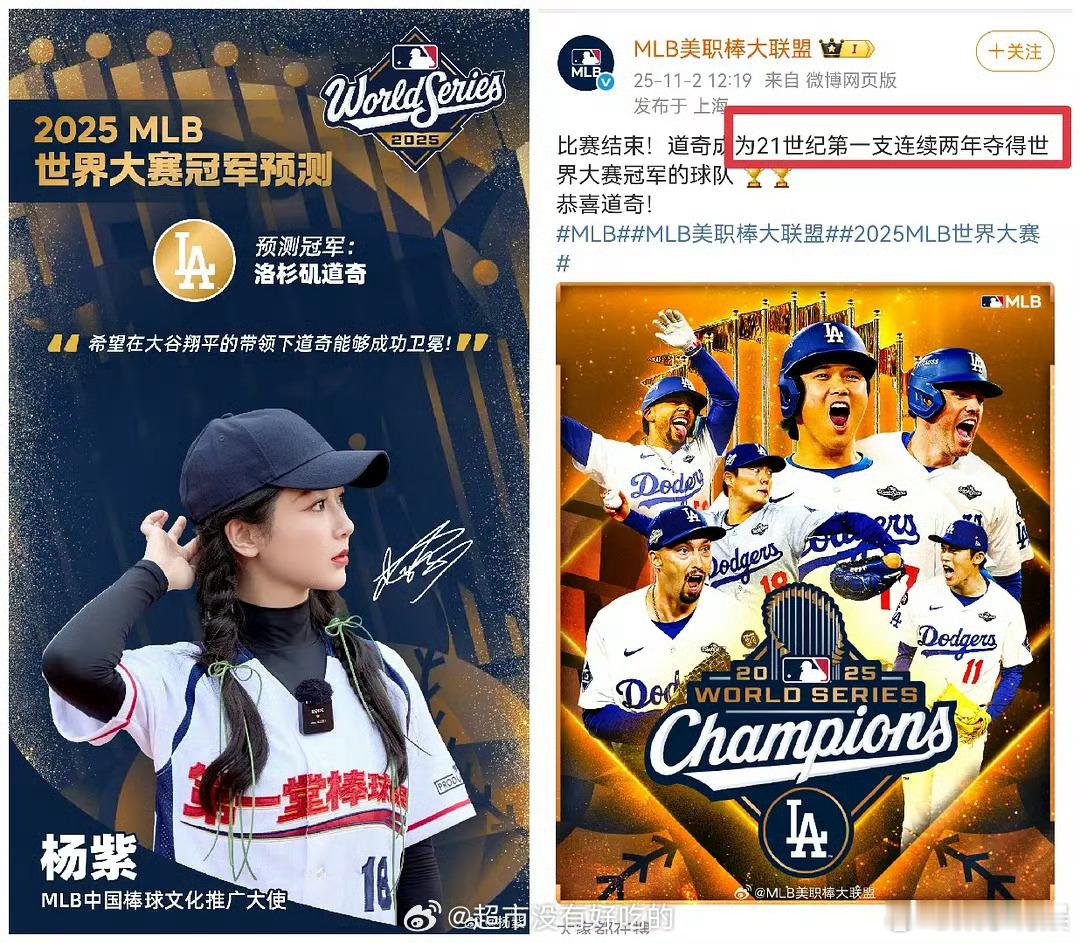 杨紫三次预测成功MLB世界大赛冠军杨紫三次预测成功MLB冠军杨紫三次预测成功MLB世界大赛冠军,厉害了,[心][心]