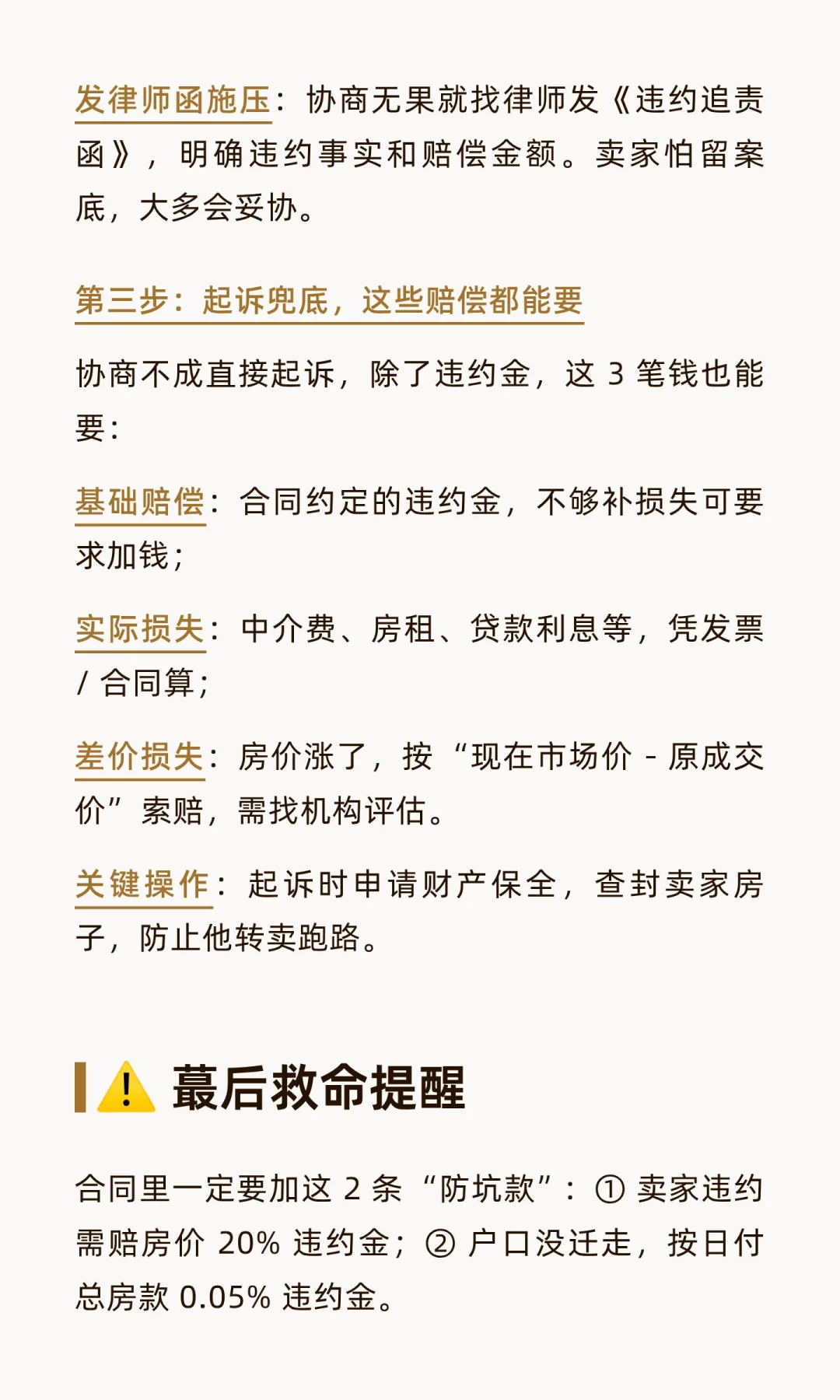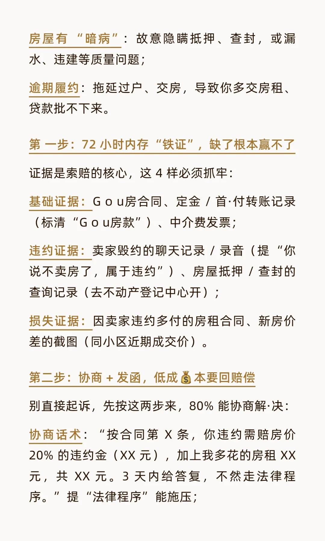 买二手房被卖家坑惨?要么临时涨价,要么干脆毁约不卖,老实人只能吃哑巴亏?错!整理了律师亲授的维权攻略,不管是卖家违约还是房屋藏隐患,按这 3 步走,违约金、差价损失都能要回