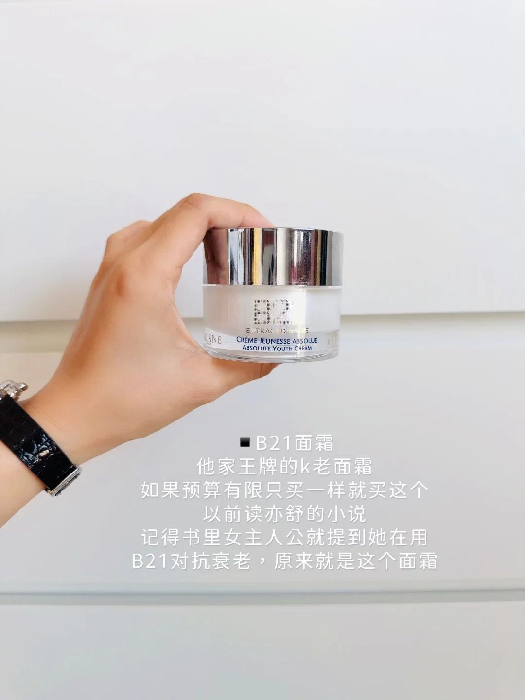 他家王牌的k老面霜,如果预算有限只买一样就买这个。以前读亦舒的小说,记得书里女主人公就提到她在用B21对抗衰老,原来就是这个面霜。奶油感的质地,挖一坨在掌心搓热,轻轻按压在脸上,淡淡的贵妇香气,是护肤过程里我觉得最有仪式感的时刻,一天的疲惫在这一刻都没了。我是混油皮,这个面霜也不觉得闷,肤感OK、是护肤最后一步被面霜包住的安心感。第二天起床看皮肤状态很饱满,确认是对我有效的面霜。
