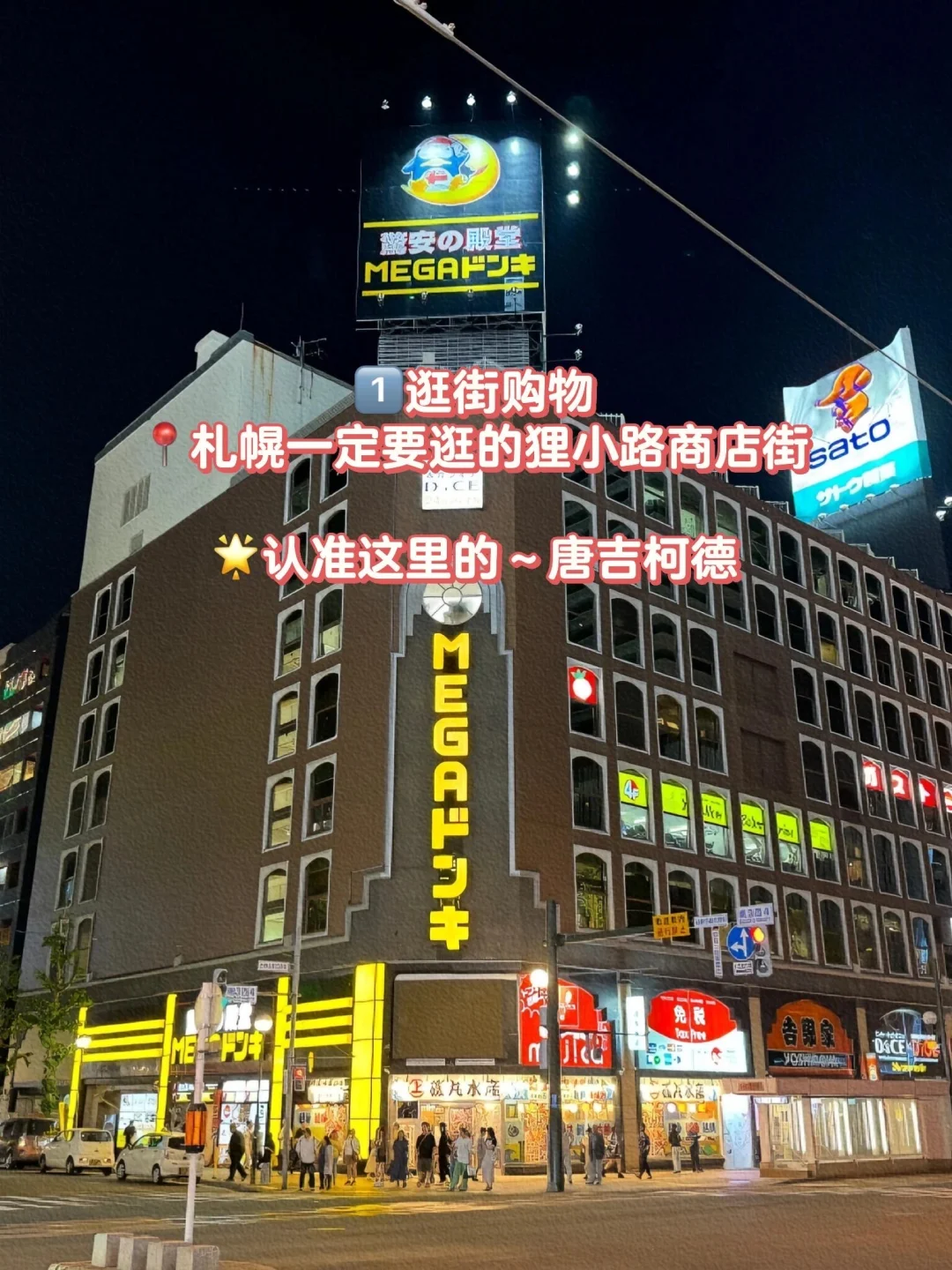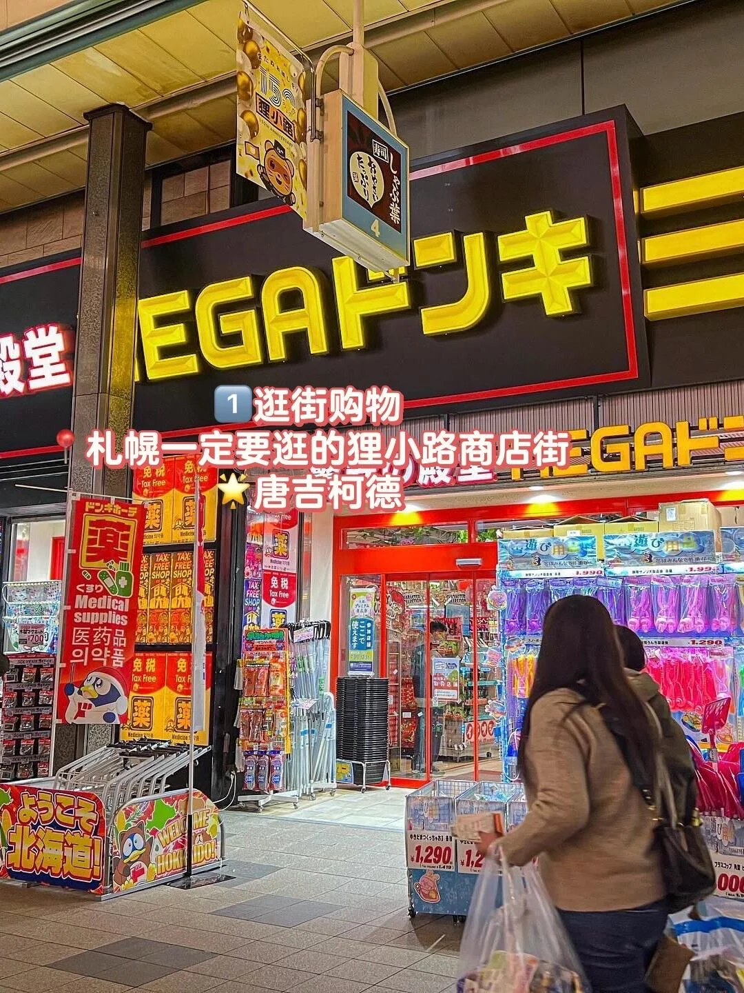 [拔草R]札幌狸小路商店街,到了晚上非常热闹唷!狸小路的堂吉柯德超级好逛!甜点零食、衣服、手表、鞋包、日常家电用品及玩具等,而且价格还可以