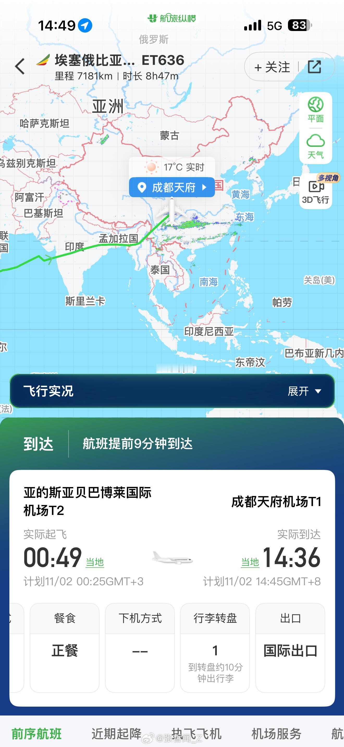 万万没想到,在天府已经有了,埃塞航空,从亚的斯亚贝巴直飞成都的航班~真牛x~