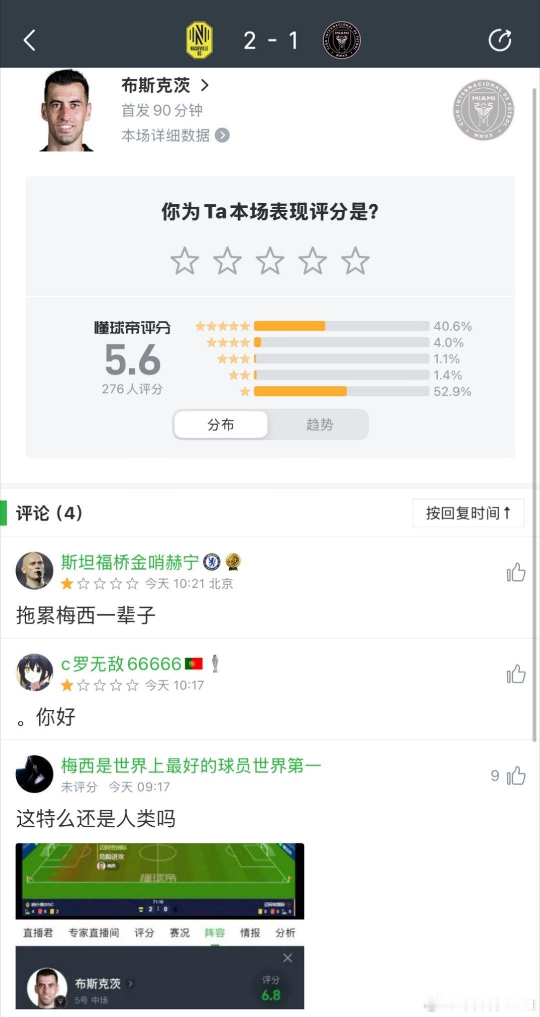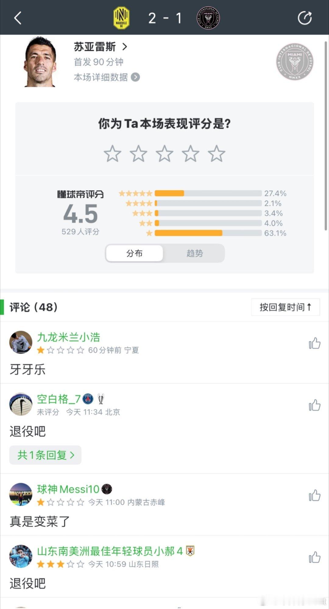 几个要退役的兄弟被梅西球迷这样骂一遍,不值当。纳什维尔2比1迈阿密国际