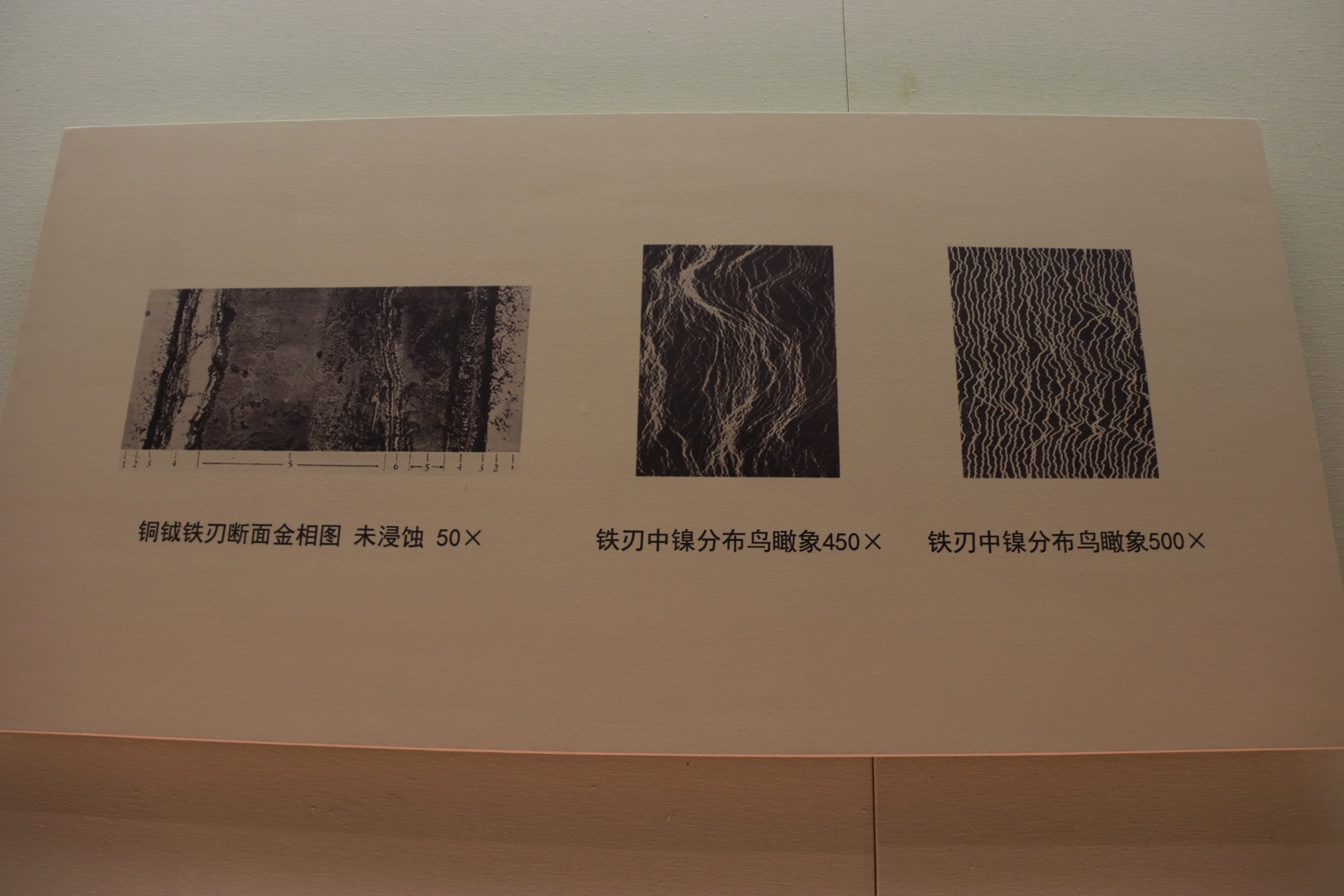 关于铁刃的材质,曾有人工冶铁和陨铁两种观点。为解决这一学术争议,著名考古学家夏鼐先生曾请北京钢铁学院(北京科技大学)的材料学家柯俊先生进行研究。柯俊先生团队通过电子探针、金相分析和X射线荧光分析等多种科技手段,分析表明,铁刃中没有人工冶铁的特征,最终科学鉴定其铁刃为陨铁锻制。文物何以中国理想都城