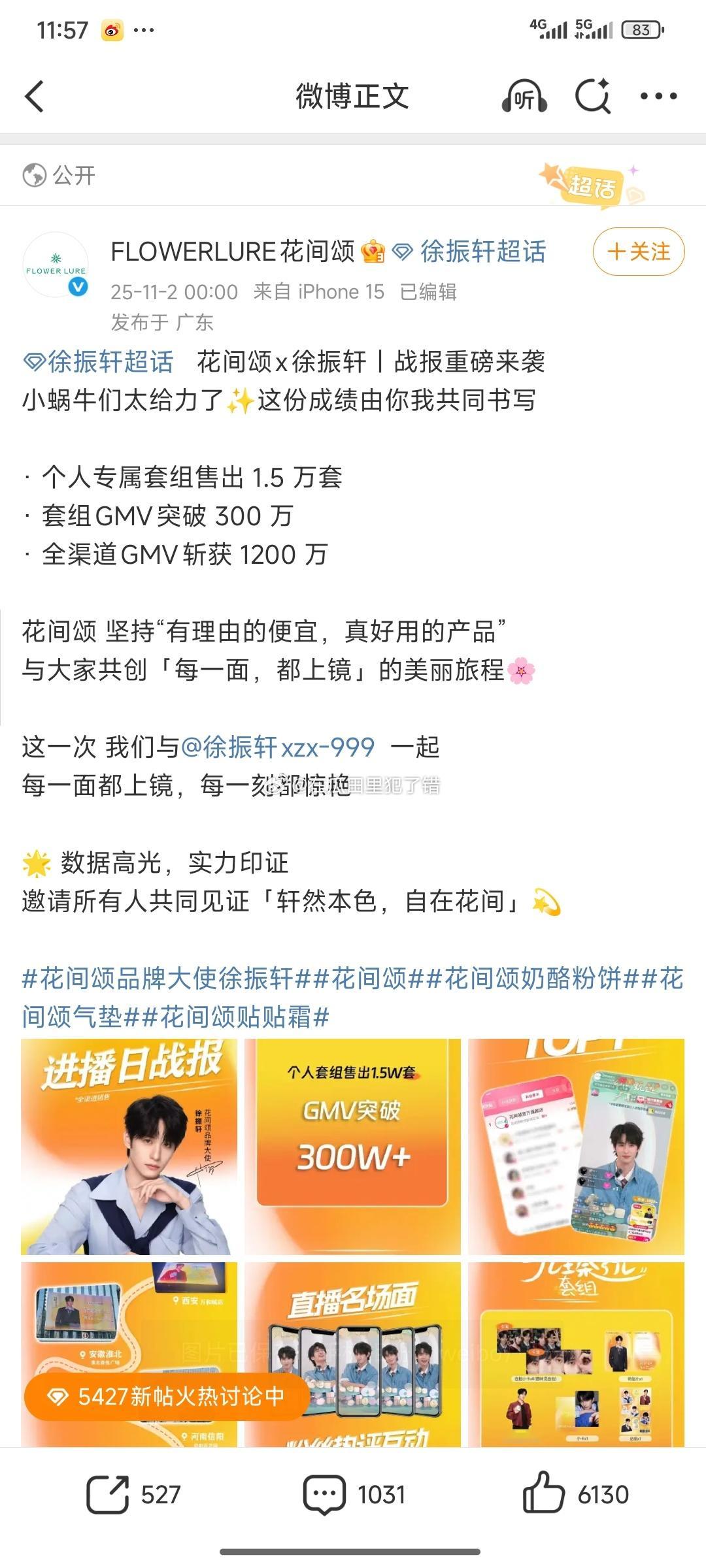 徐振轩新商务出的战报GMV1200万,粉丝购买力很🐮诶