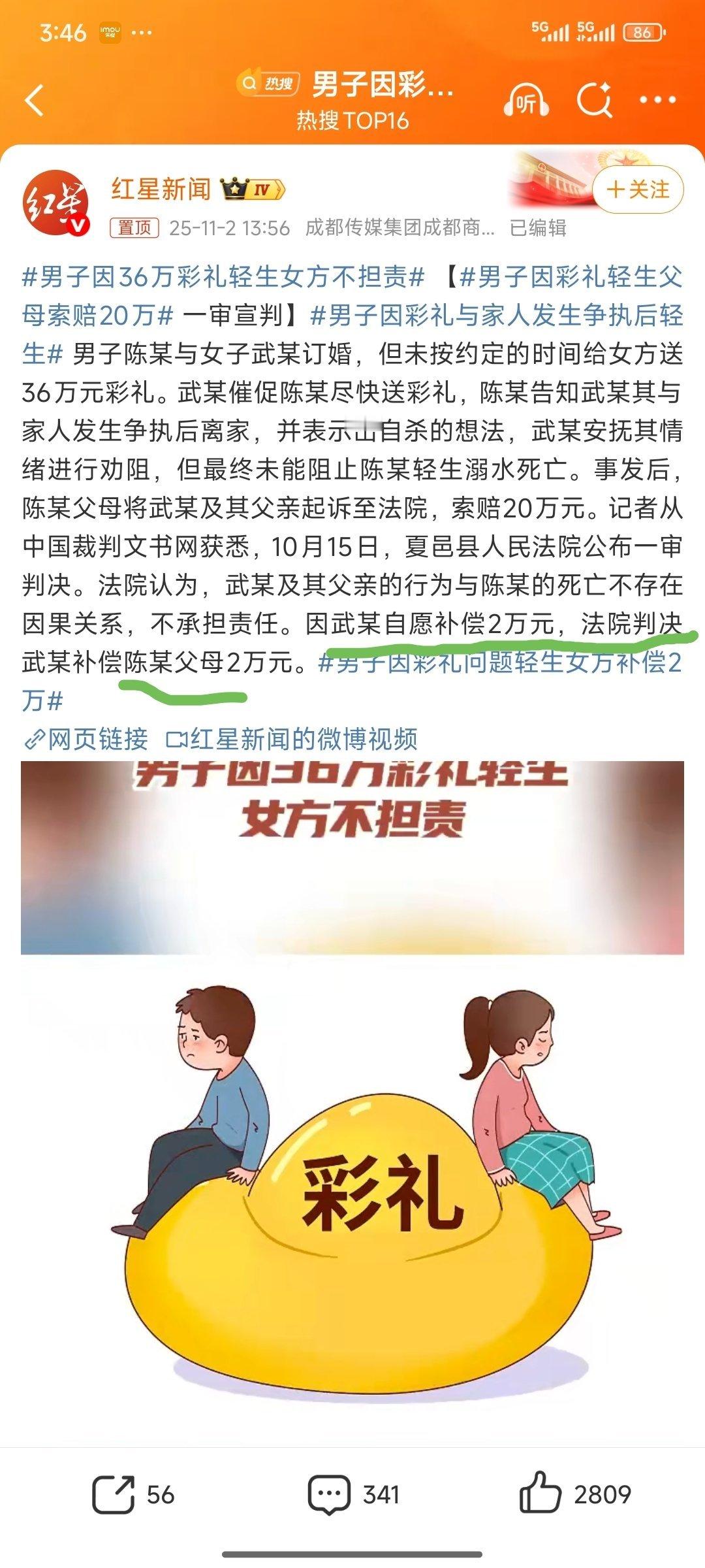 男子因彩礼轻生父母索赔20万女生也太好了吧,给了2w还安抚男方家属情绪,基短们不结婚啥事都没。