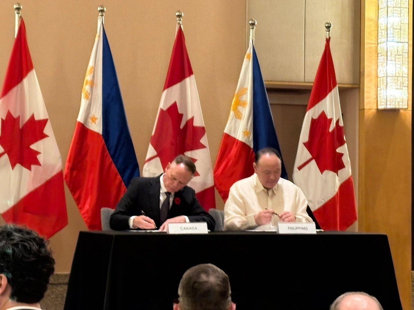 菲律宾与加拿大签署访问部队地位协定今天下午,菲律宾国防部长吉尔伯特·特奥多罗和加拿大国防部长戴维·麦金蒂签署《访问部队地位协定》(SOVFA)。该协定允许两国在对方领土部署部队。加拿大的目的,就是想在菲律宾有个落脚点搅和南海。